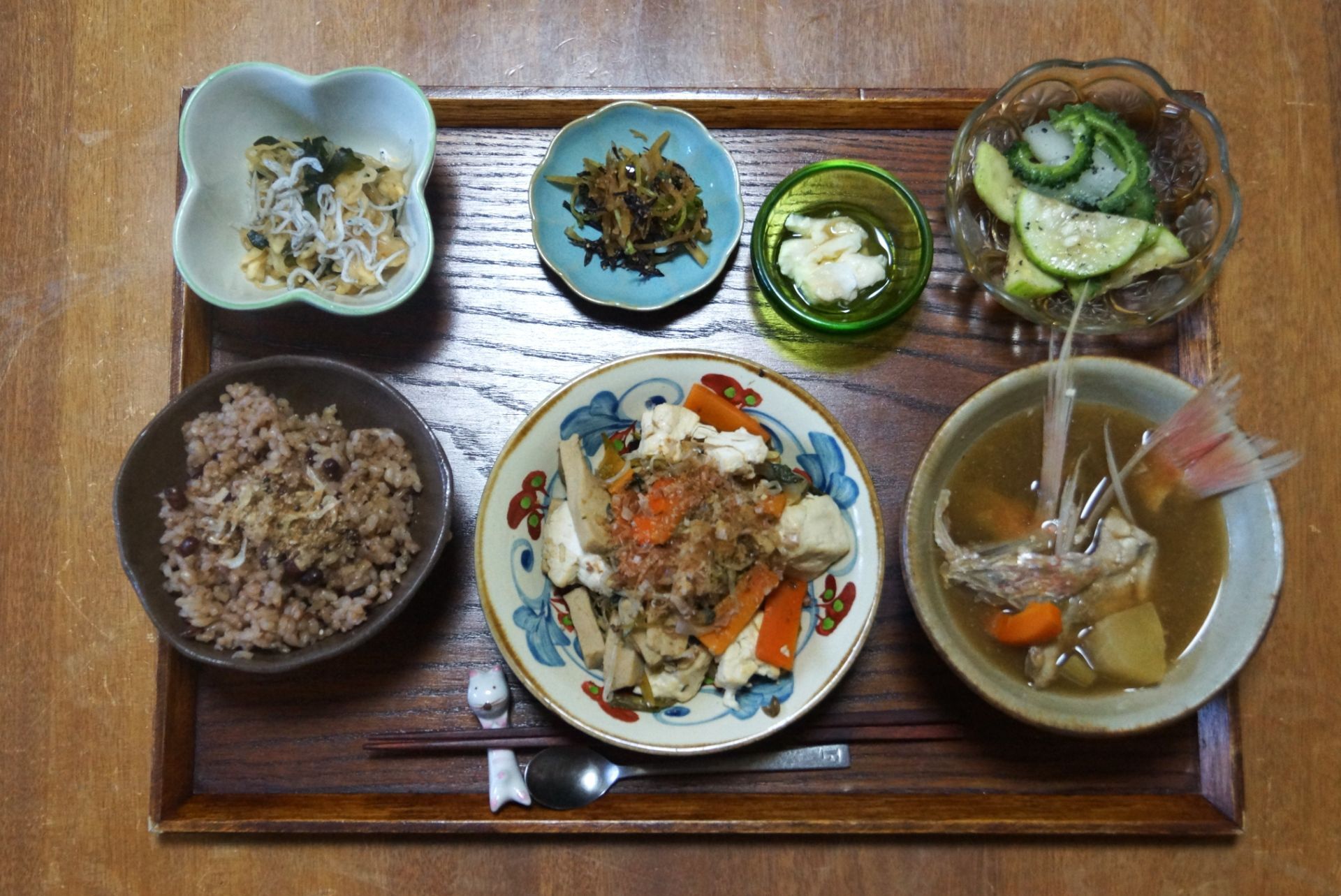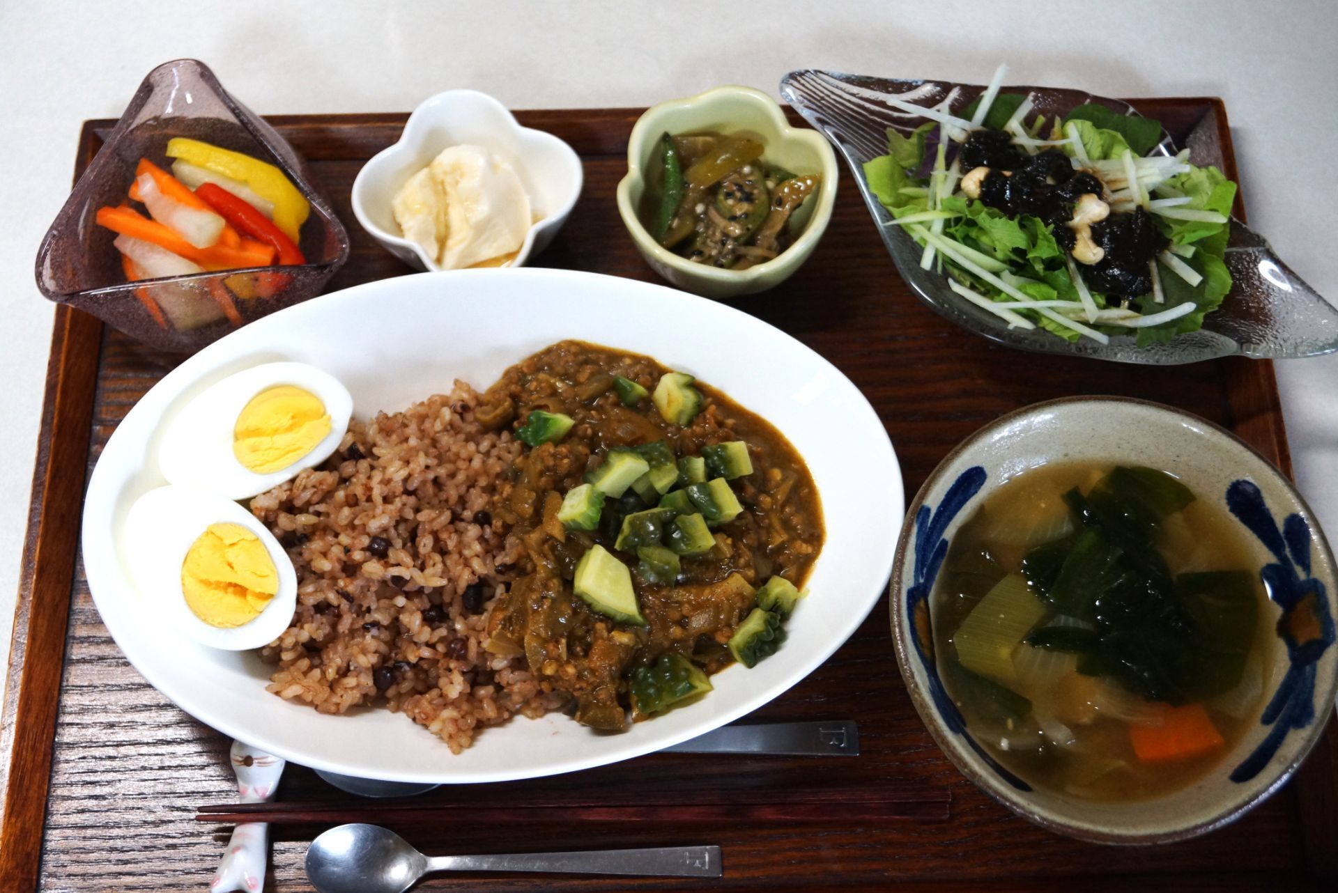 高きびとゴーヤーのキーマカレー ゆで卵添え