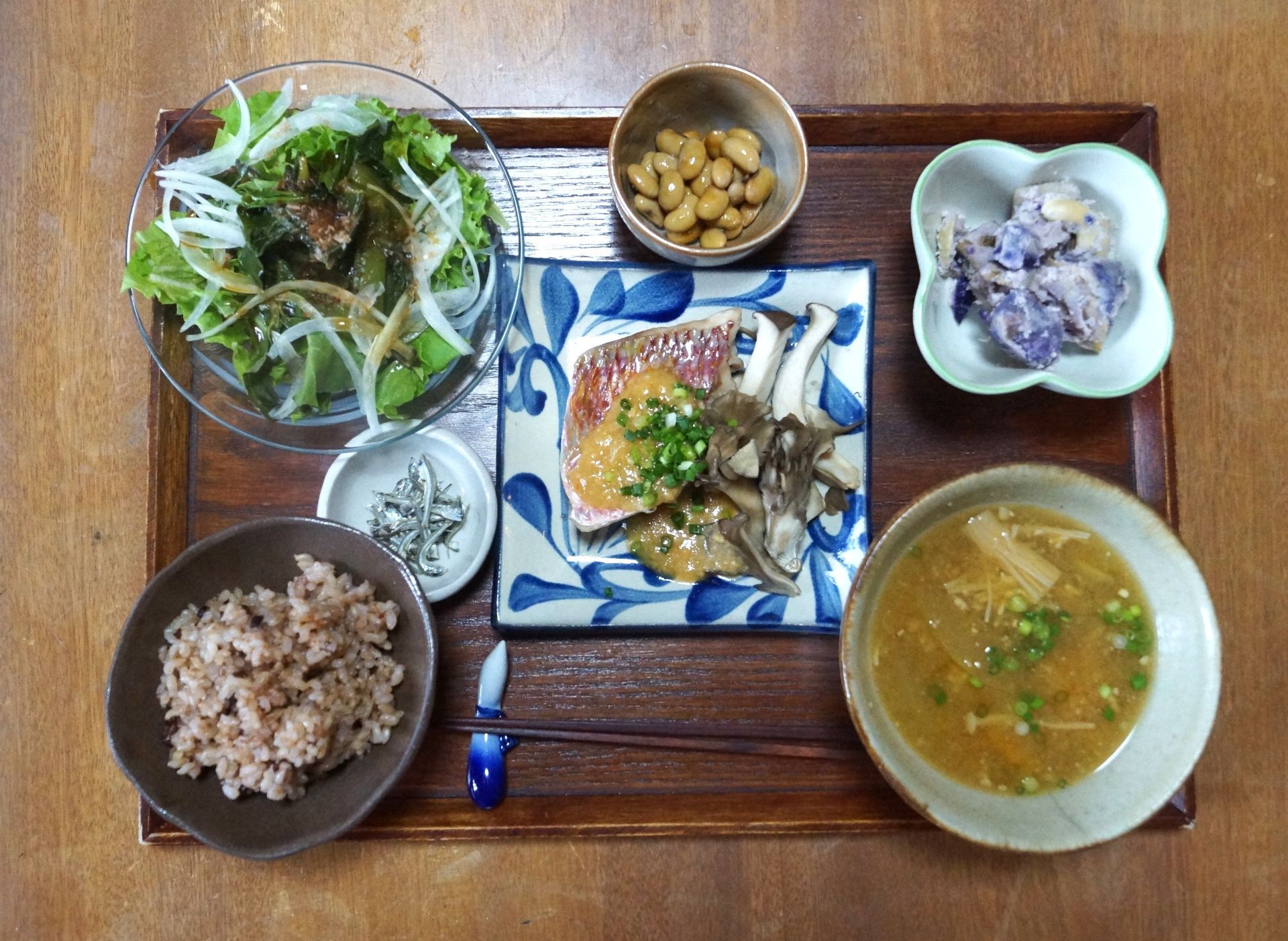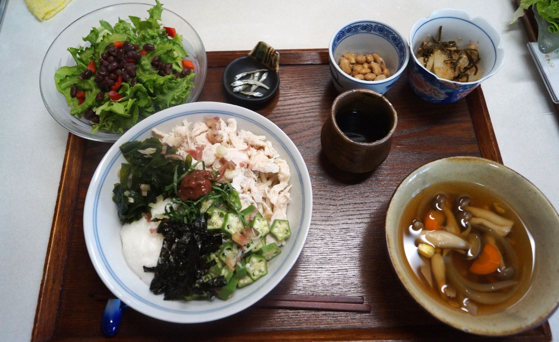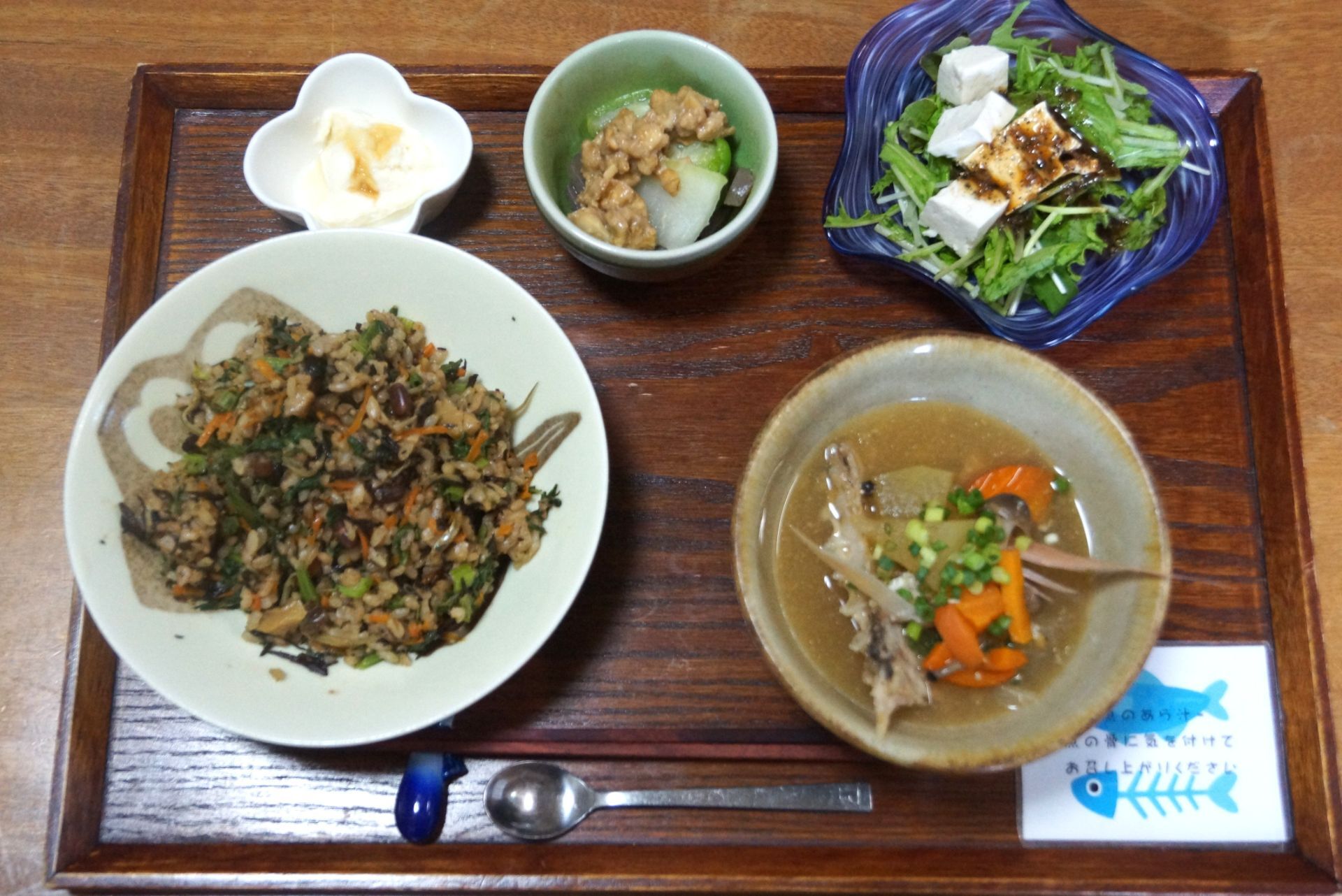 水菜とモーイの黒ゴマ納豆のせ