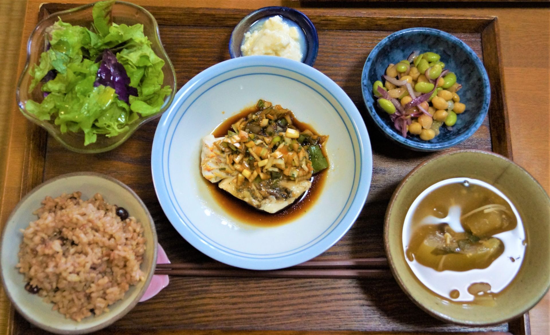 薬味をたっぷりかけた『蒸し魚の中華風甘酢だれ』