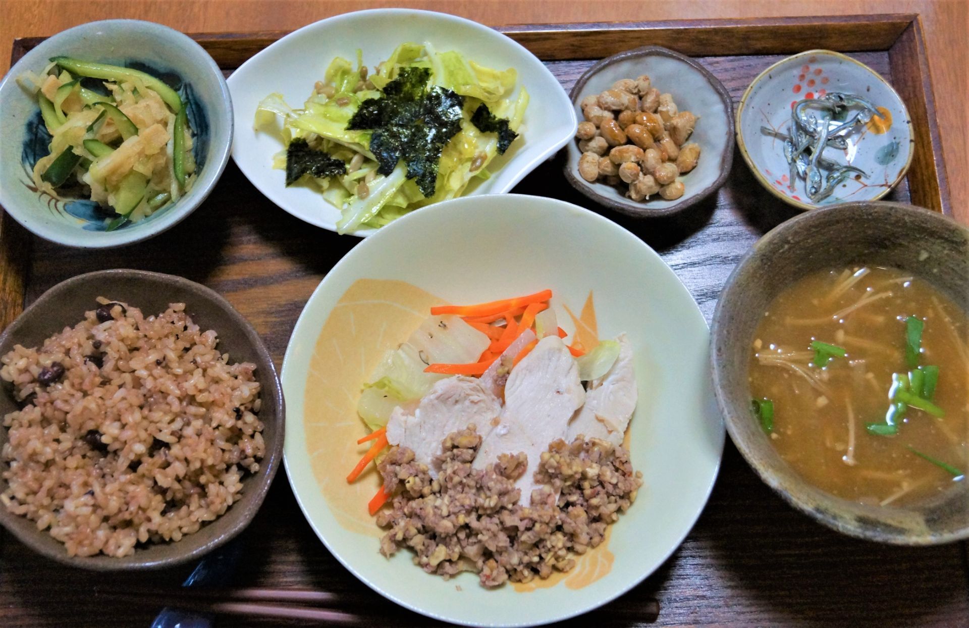 蒸し鶏の梅クルミ和え