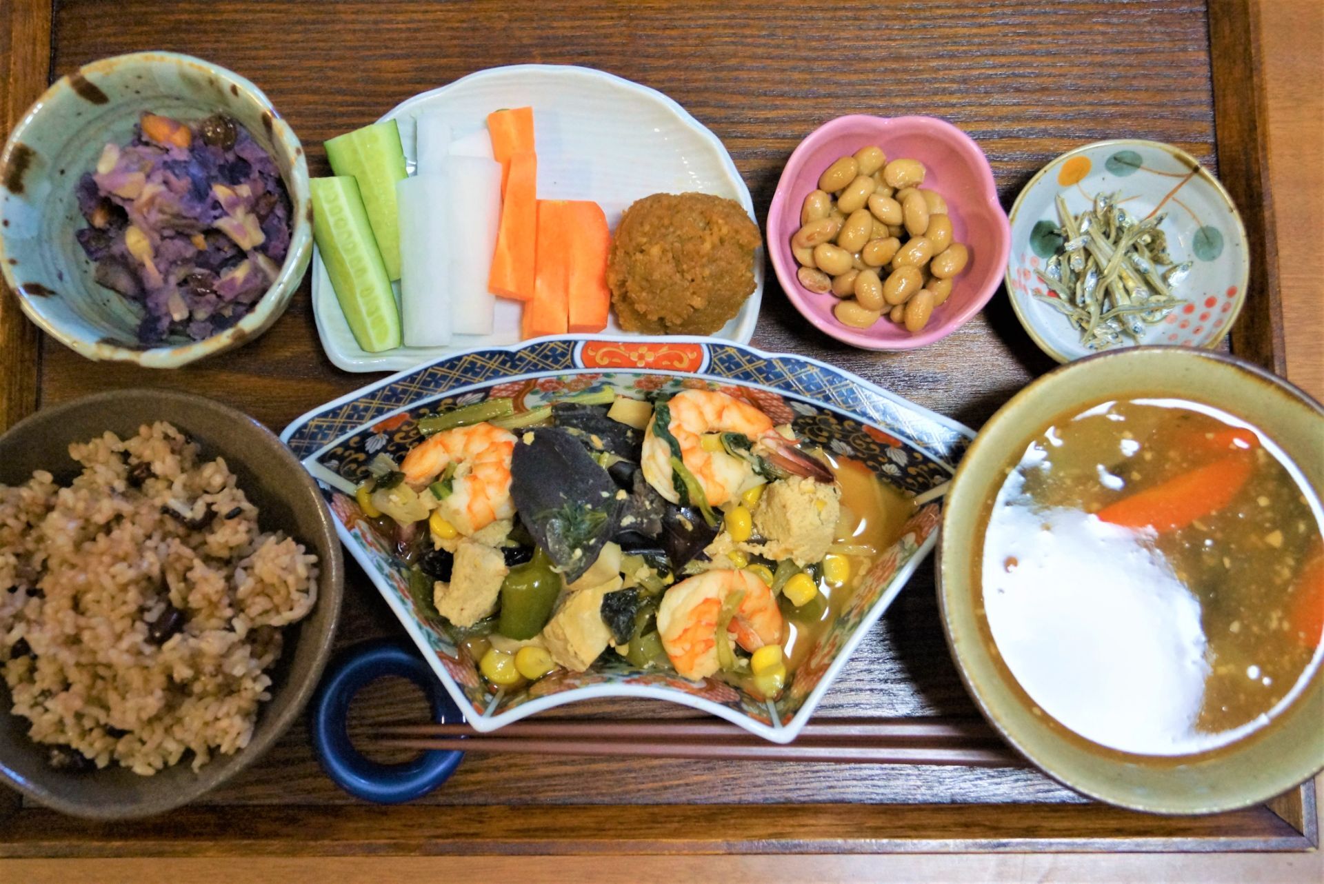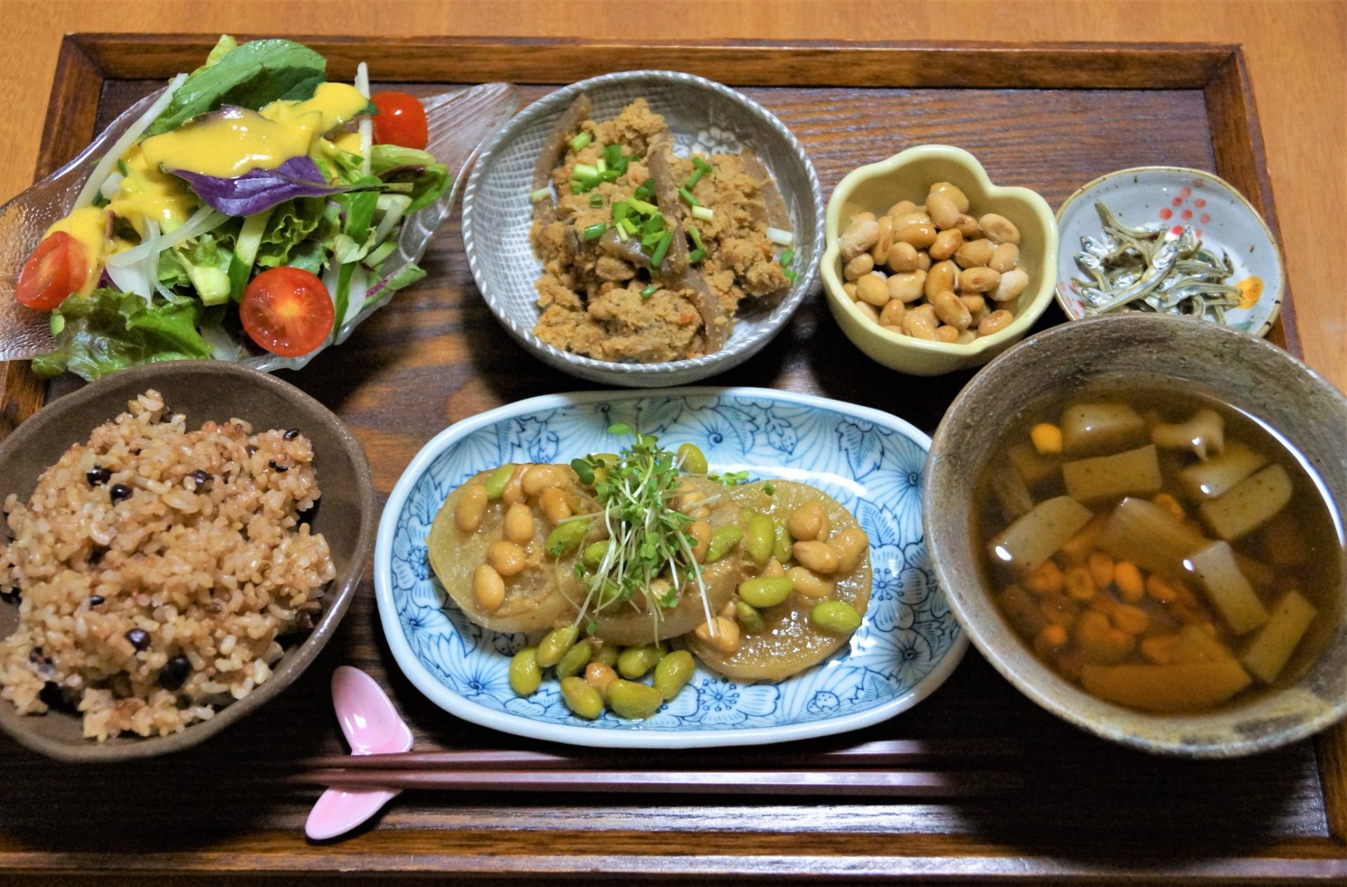 お豆と根菜の甘酒醤油煮