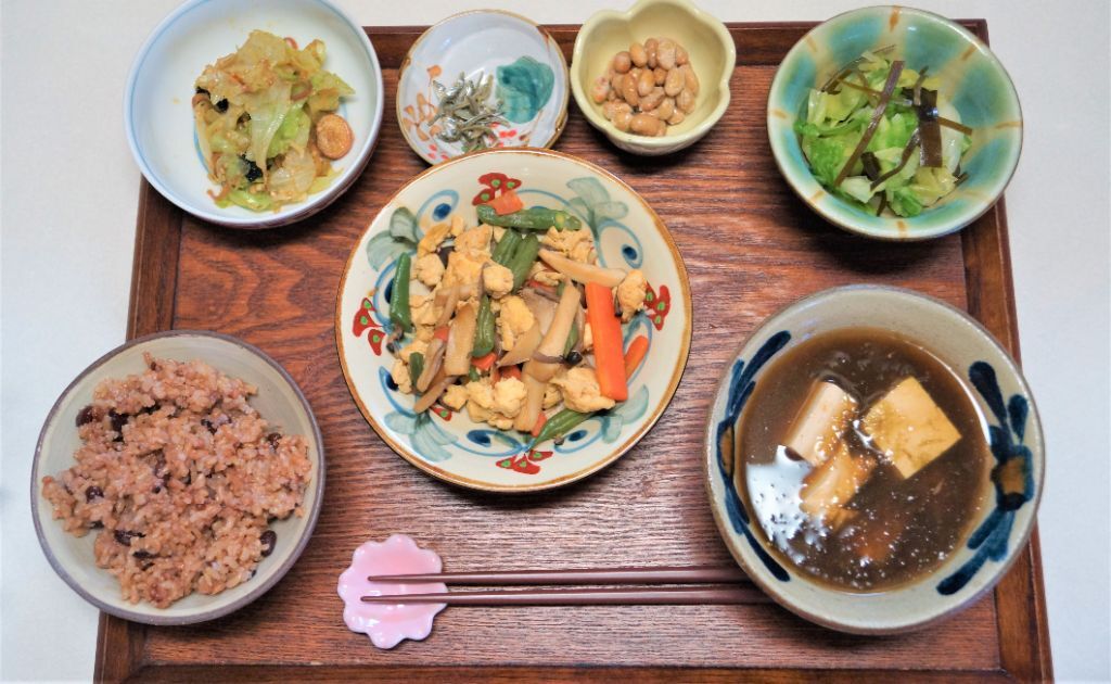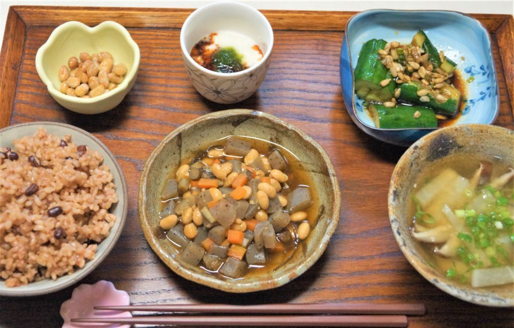 根菜たっぷり『五目煮』とネギが香る『胡瓜とナッツの漬物』磯の香り『アーサのとろろ』をご紹介