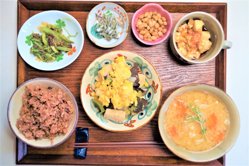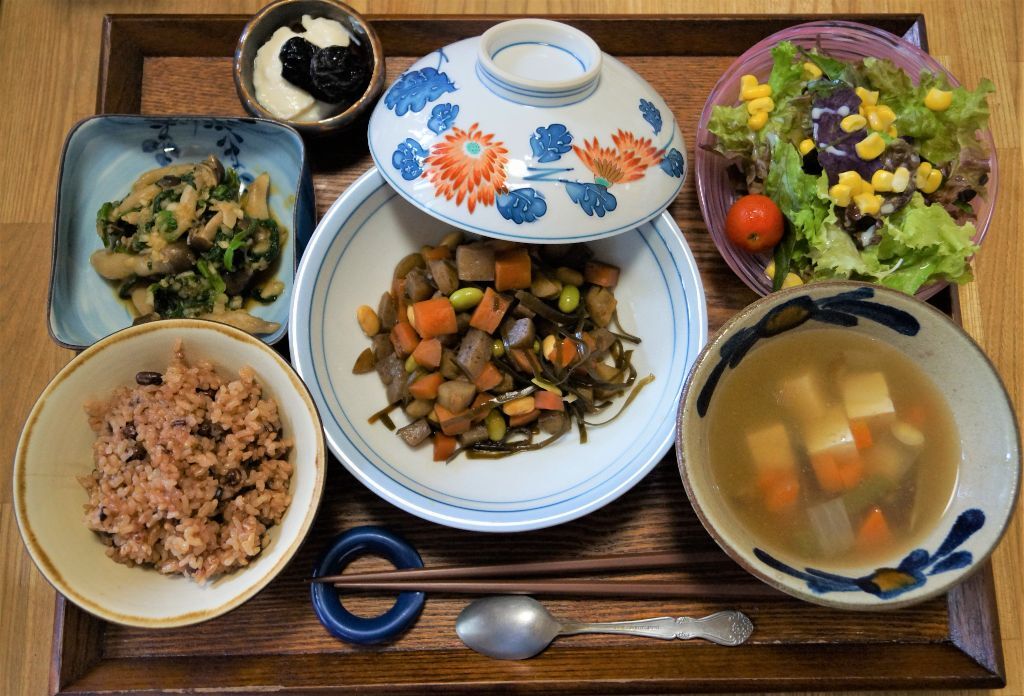 根菜とお豆がたっぷりとれる『大豆の五目煮』に、たっぷりの大根おろしを和えた『青菜のきのこおろし和え』