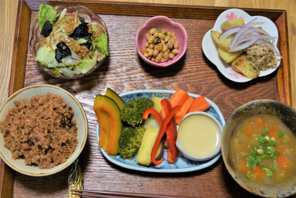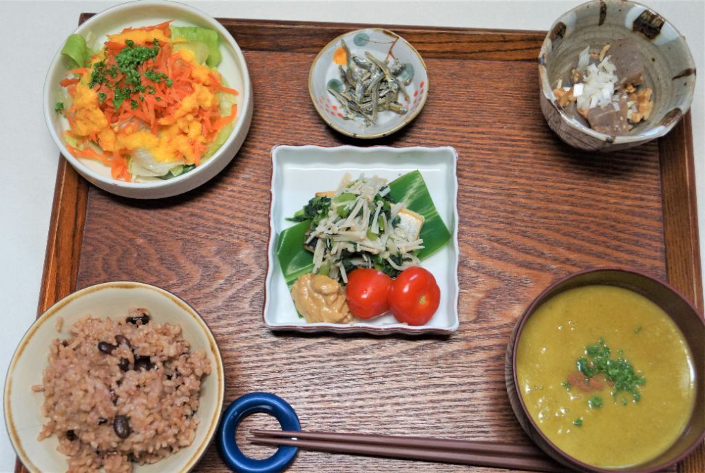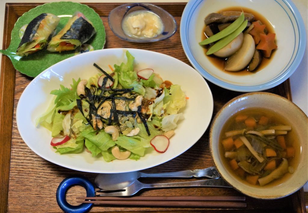 今日のメニューは『サラダちらし寿司』に『お煮しめ』『生春巻き』野菜がたっぷりとれるメニューになっています。