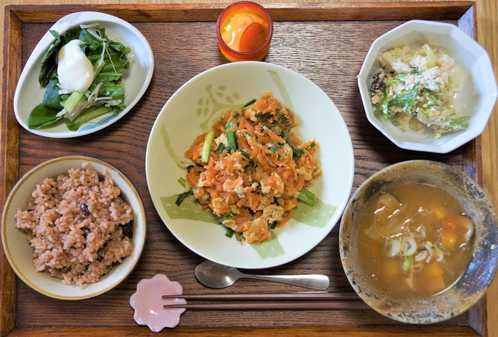 沖縄料理の定番『にんじんしりしり』副菜にはキャベツとミックスビーンズの白和えを♪