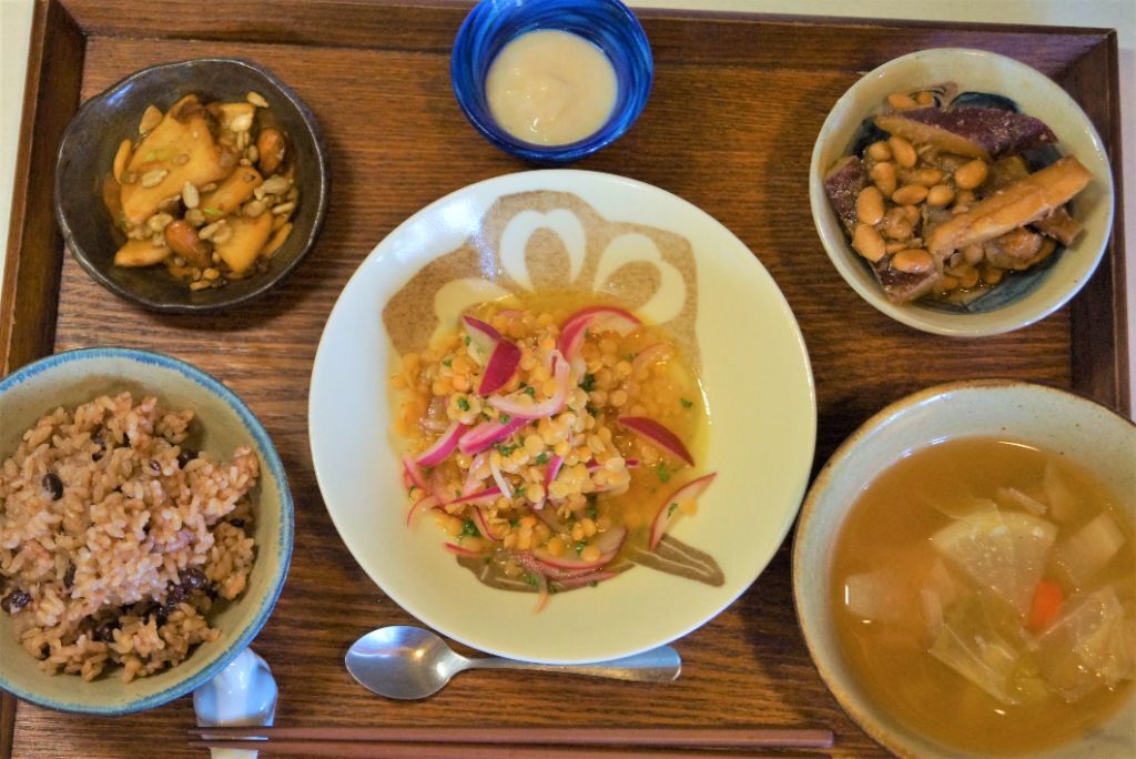 レンズ豆と白身魚でさっぱりマリネ♪副菜にはホクホクお芋が美味しい『芋と大豆の酢きんぴら』を♪