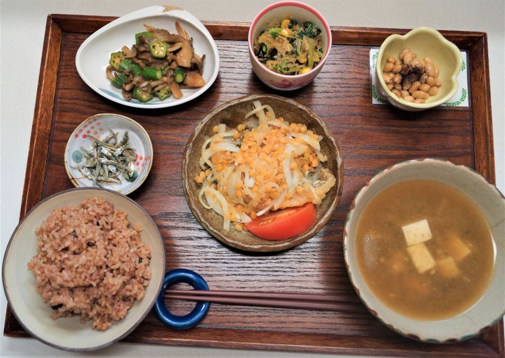 レンズ豆と白身魚と合わせたサッパリマリネ♪ポン酢でお箸が進む『きのこのオクラ和え』♪小松菜とコーンでお子様でも食べやすい『小松菜のじゃこ和え』をご紹介♪