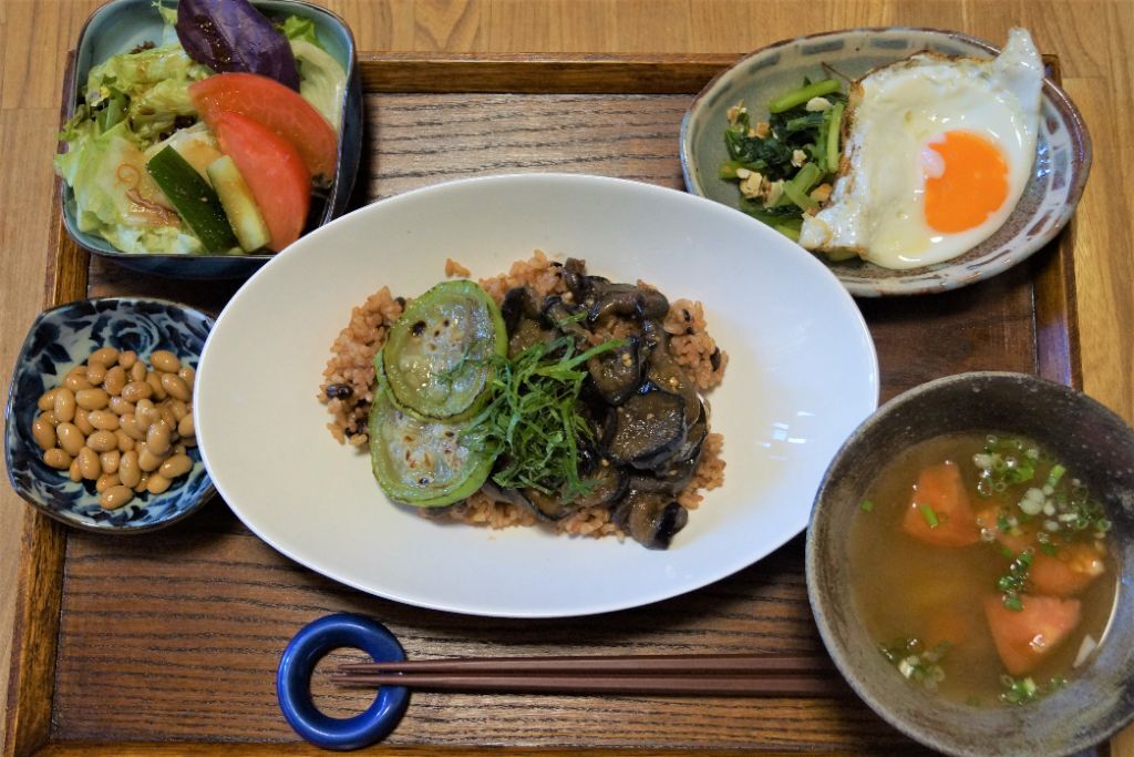 梅干しでさっぱり仕上がったヘチマとナスの梅の照り焼き丼♪