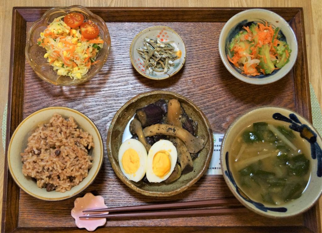 蒸しナスと茹で卵の和え物