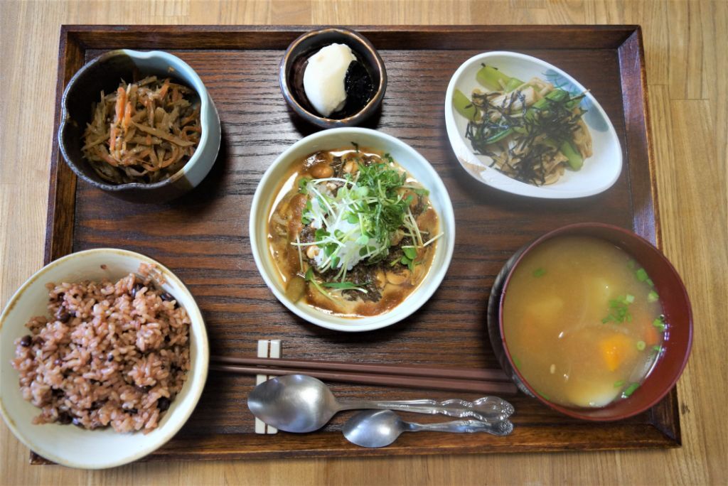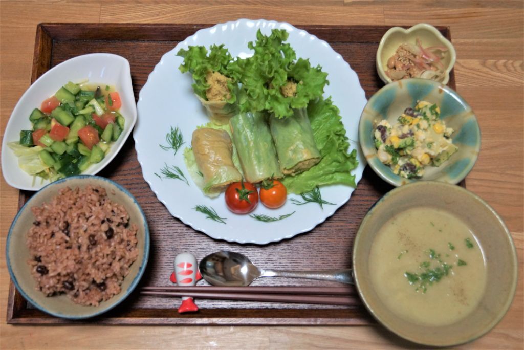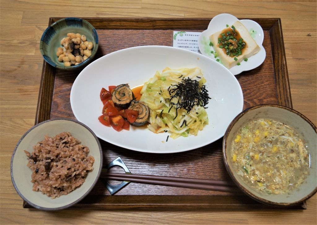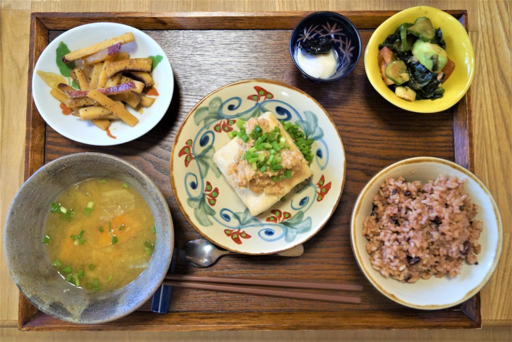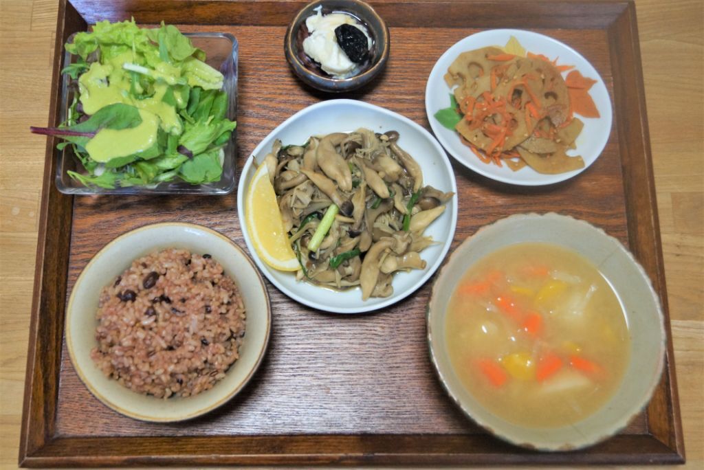 食物繊維・ビタミンB類・ビタミンD2・ミネラルなどを豊富に含むきのこがメインのヘルシー献立。