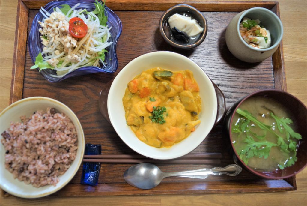 タンドリーエビには自家製豆乳ヨーグルトを使用。健康効果に加えて、大豆の栄養も。