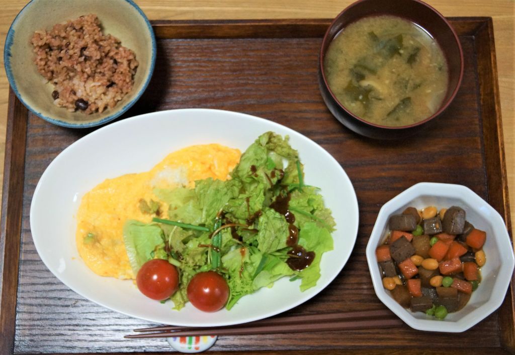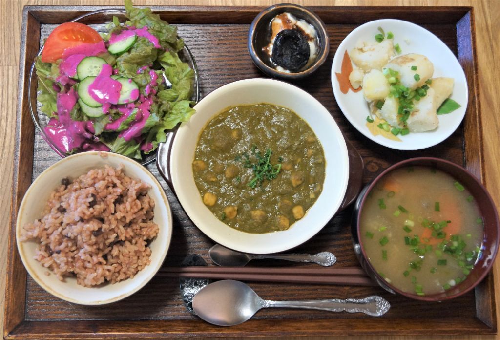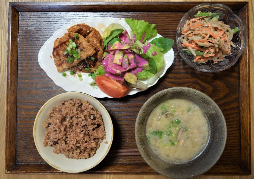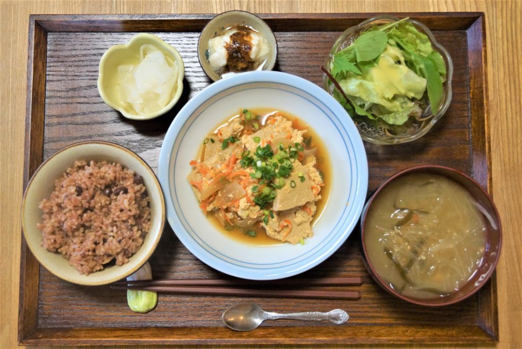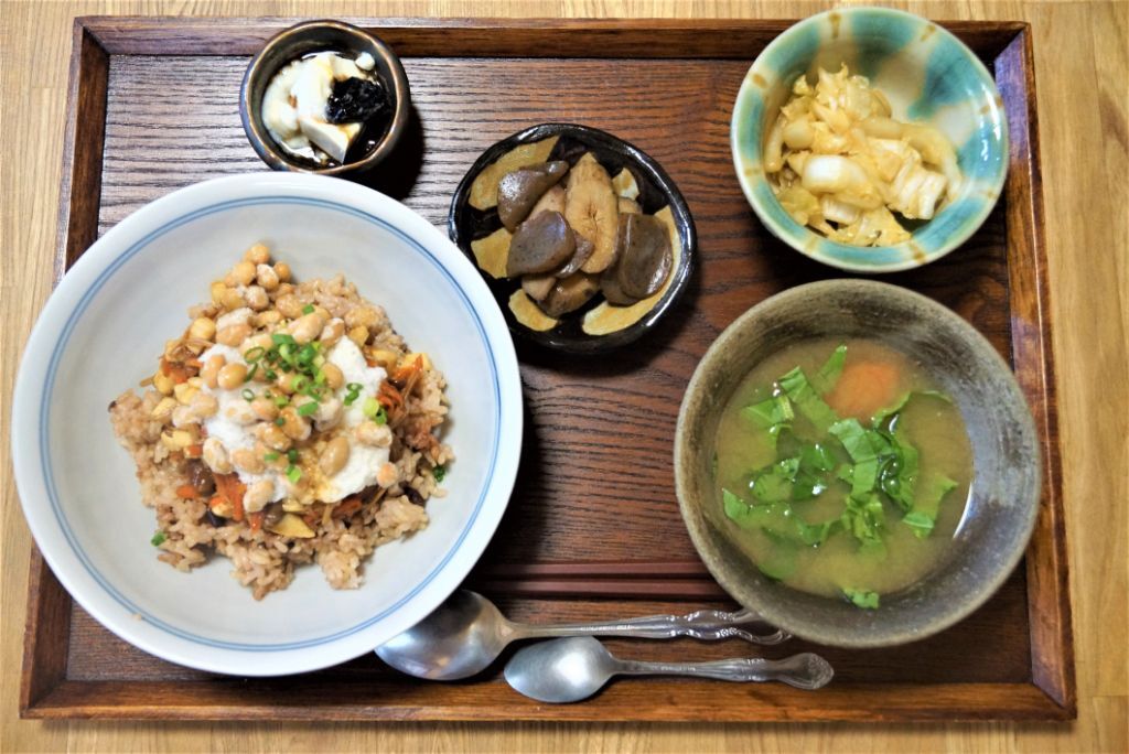 手作り納豆+卵で動植物性タンパク質を摂取。自家製味噌も加え、コクのある味わいに。