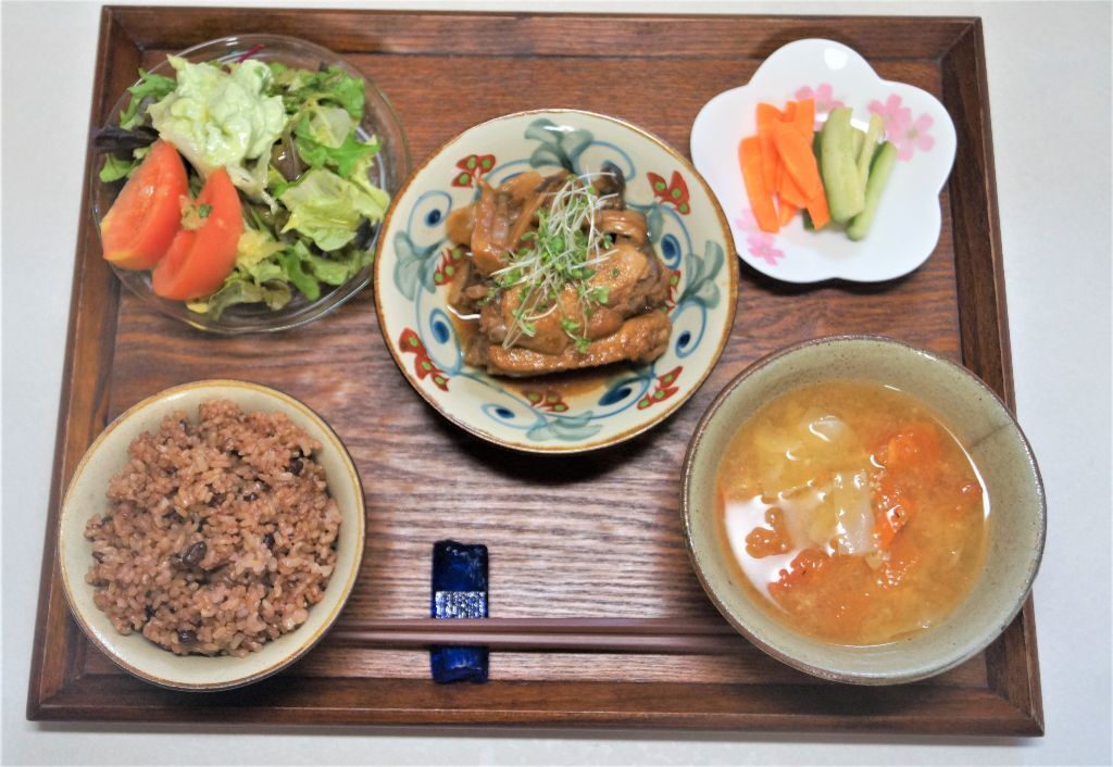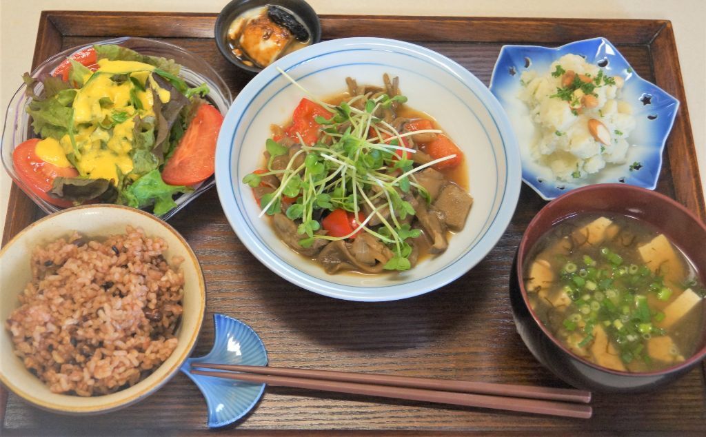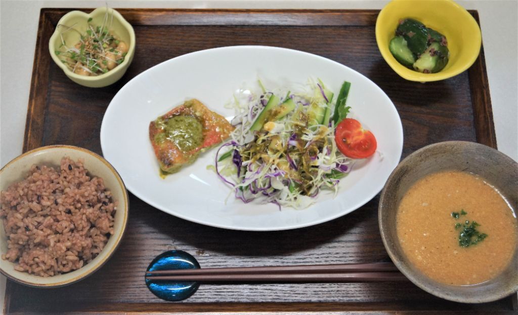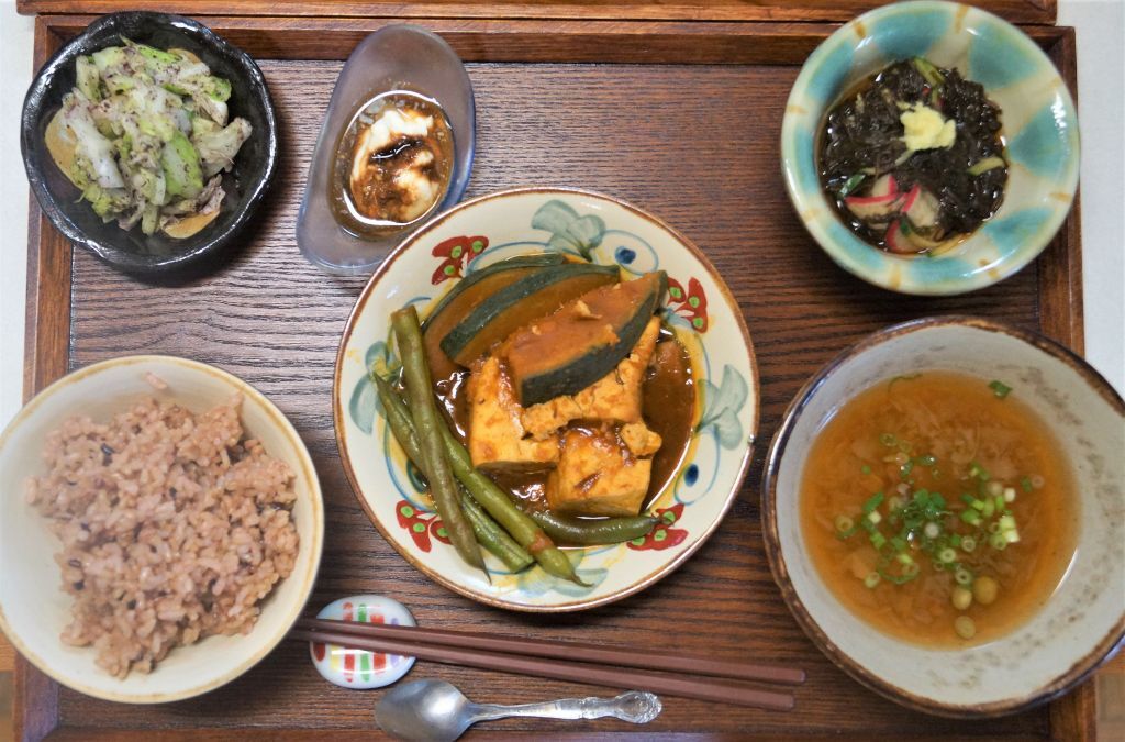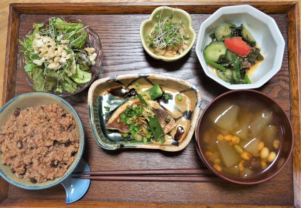 べジ献立。もずく・生野菜もしっかり摂って腸内環境を整えましょう。