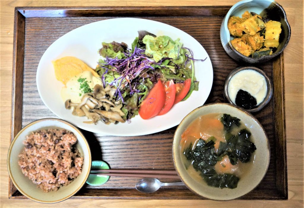 必須アミノ酸をバランスよく含んだ卵とニラのビタミンCと食物繊維。副菜にはローフードで野菜をたっぷりと。