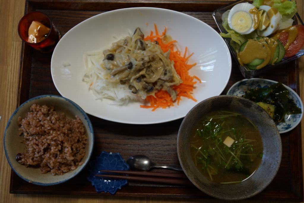 味噌ときのこの豆乳カルボナーラ風