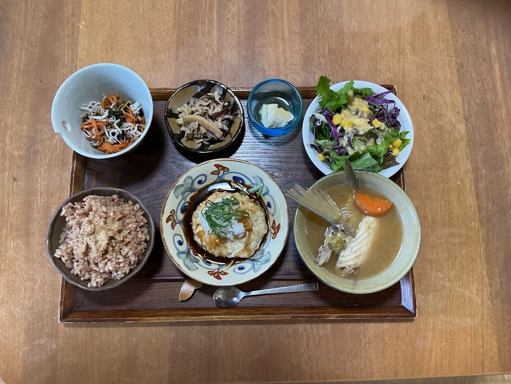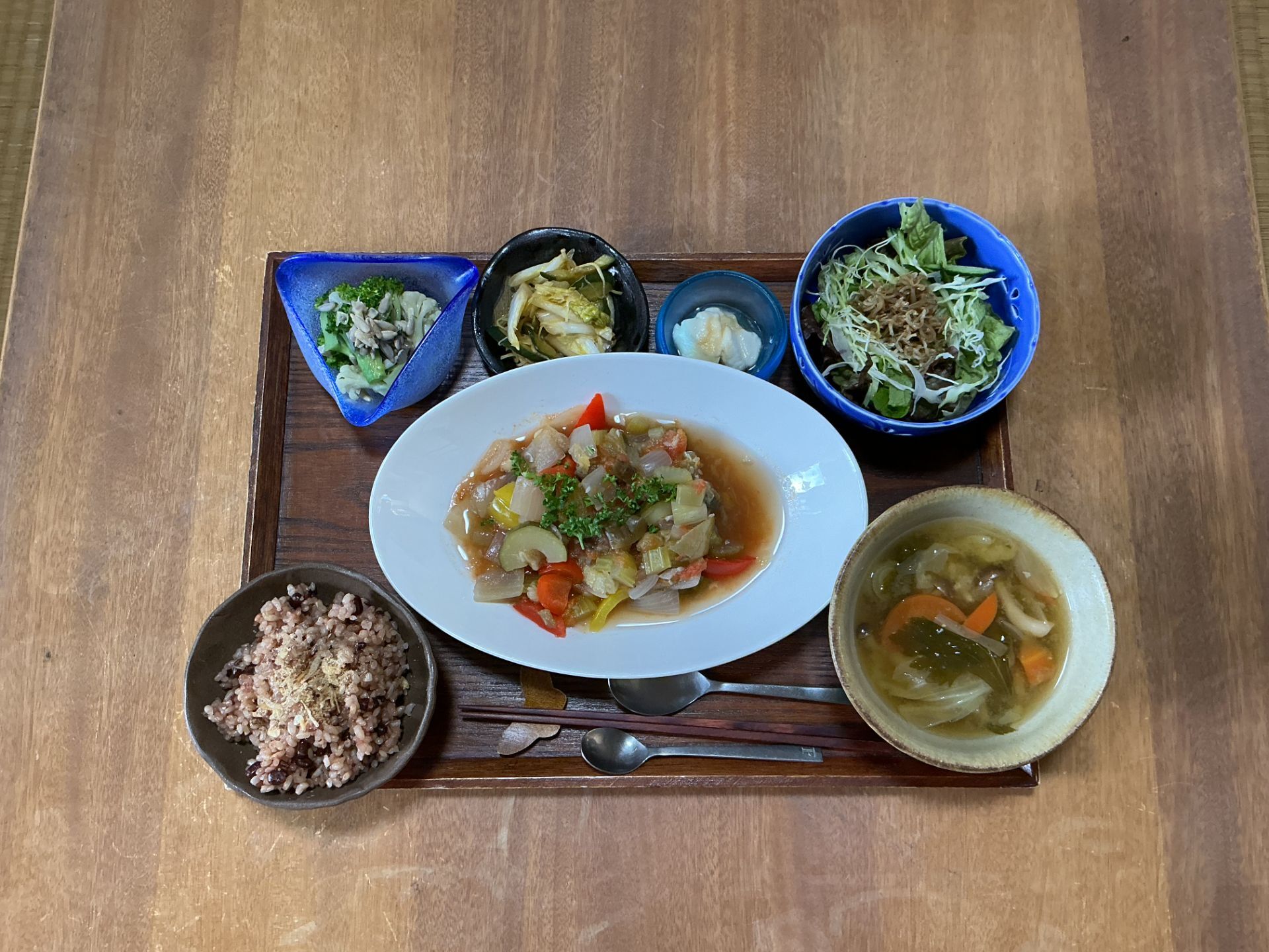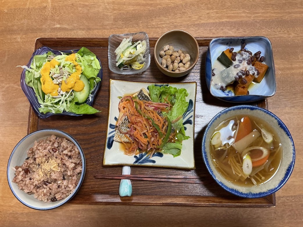 蒸し魚とかぼちゃ小豆煮のやさしい献立