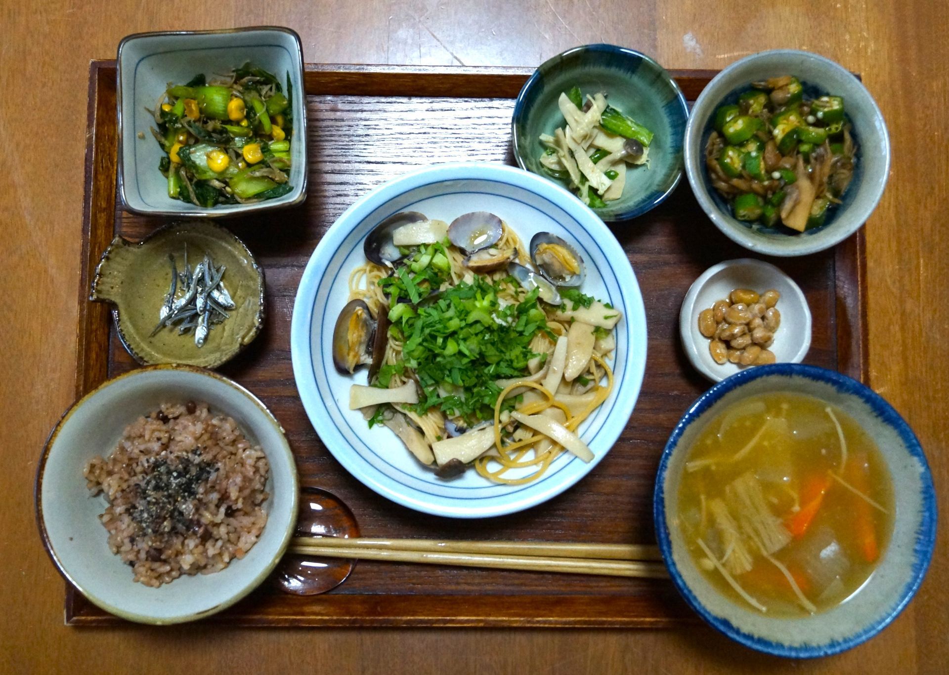 あさりときのこの和風ガーリックパスタ
