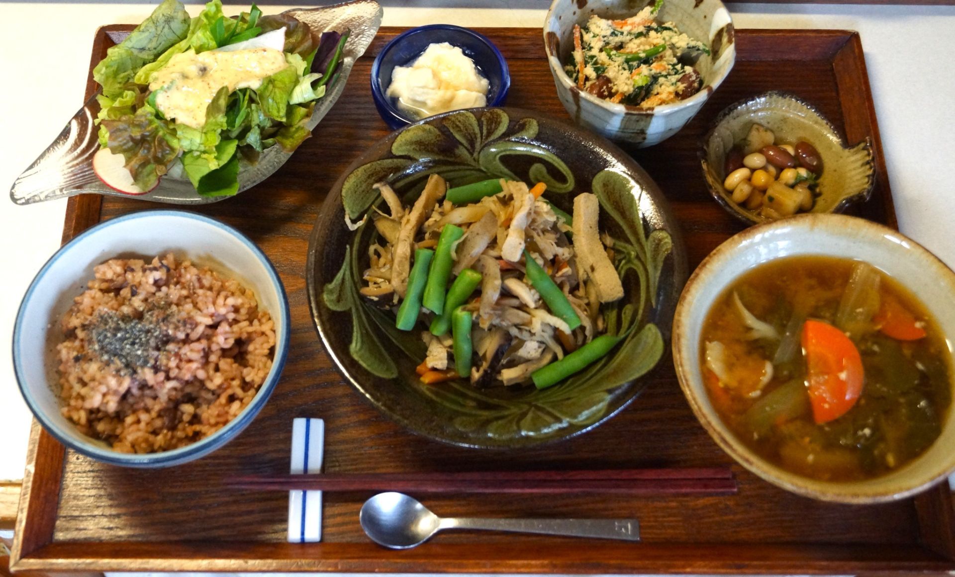 食物繊維豊富な高きび入りのキーマカレーにゴーヤーを添えて
