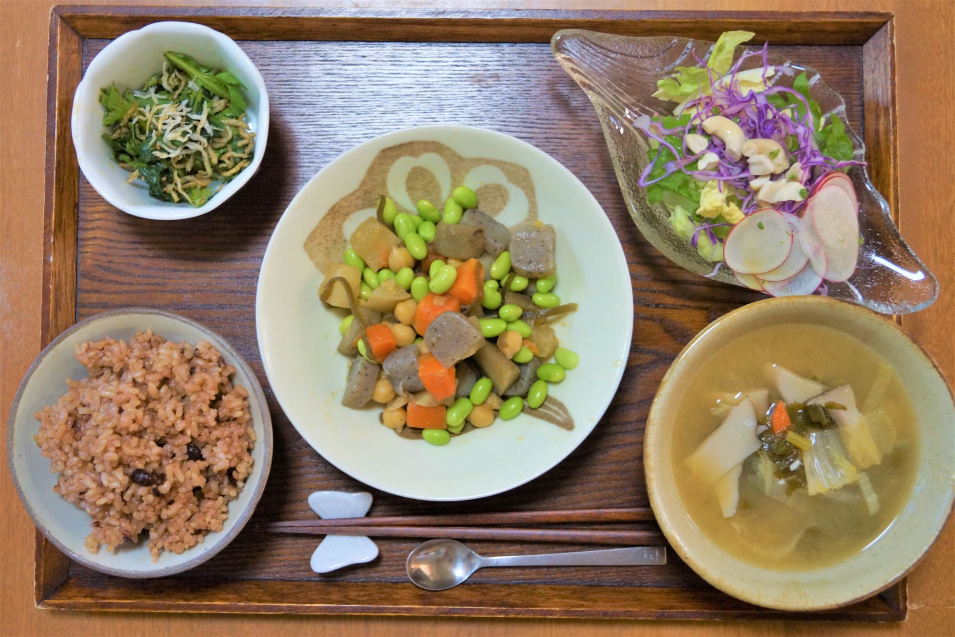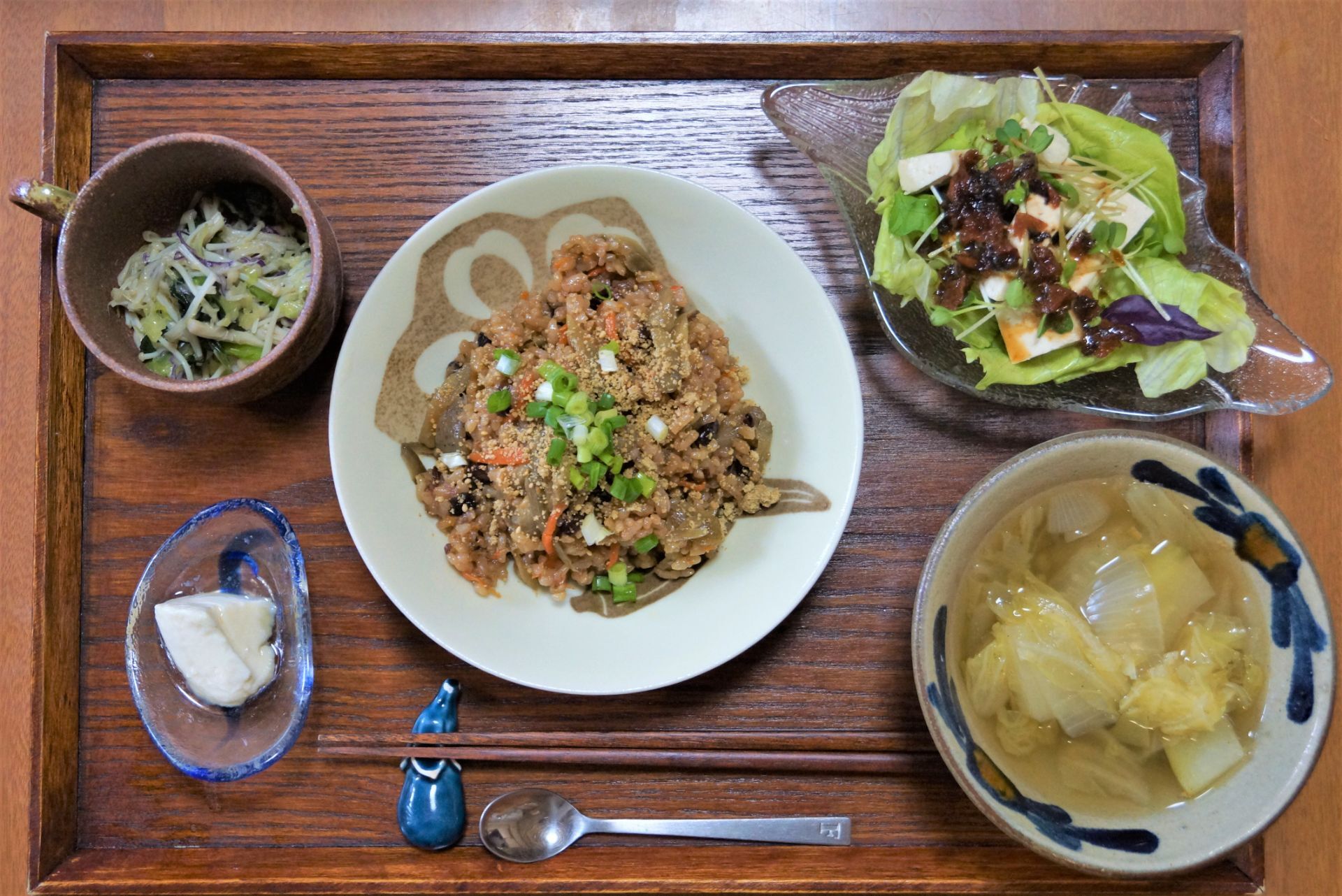 ほんのりピリ辛に味付けしたごぼうを玄米と合わせた混ぜご飯!