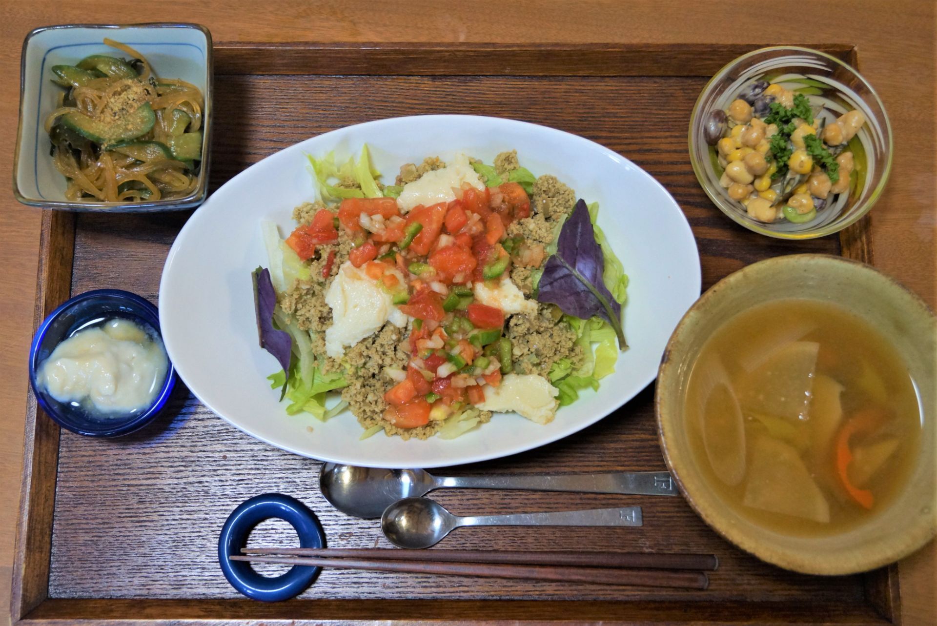 ブロッコリーと豆の胡麻ドレッシングサラダ