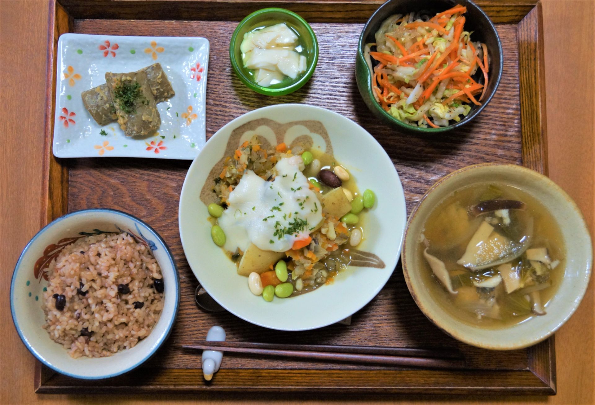 スパイス香る豆ソースを蒸しじゃが芋にたっぷりかけて♪
