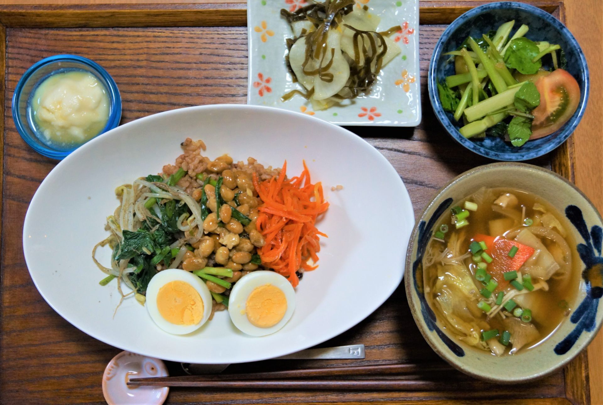 ゆいクリニック手作りの納豆をたっぷりった『ビビンバ風丼』