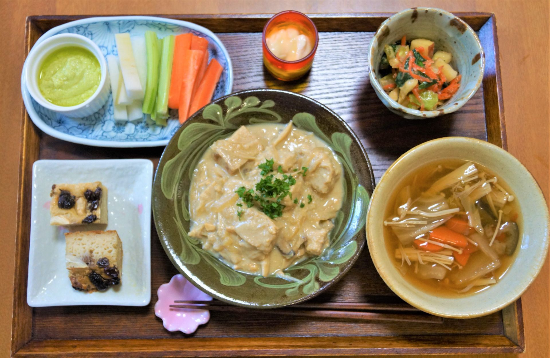 冷凍豆腐を加えて食べ応えのある豆乳クリームシチューになりました