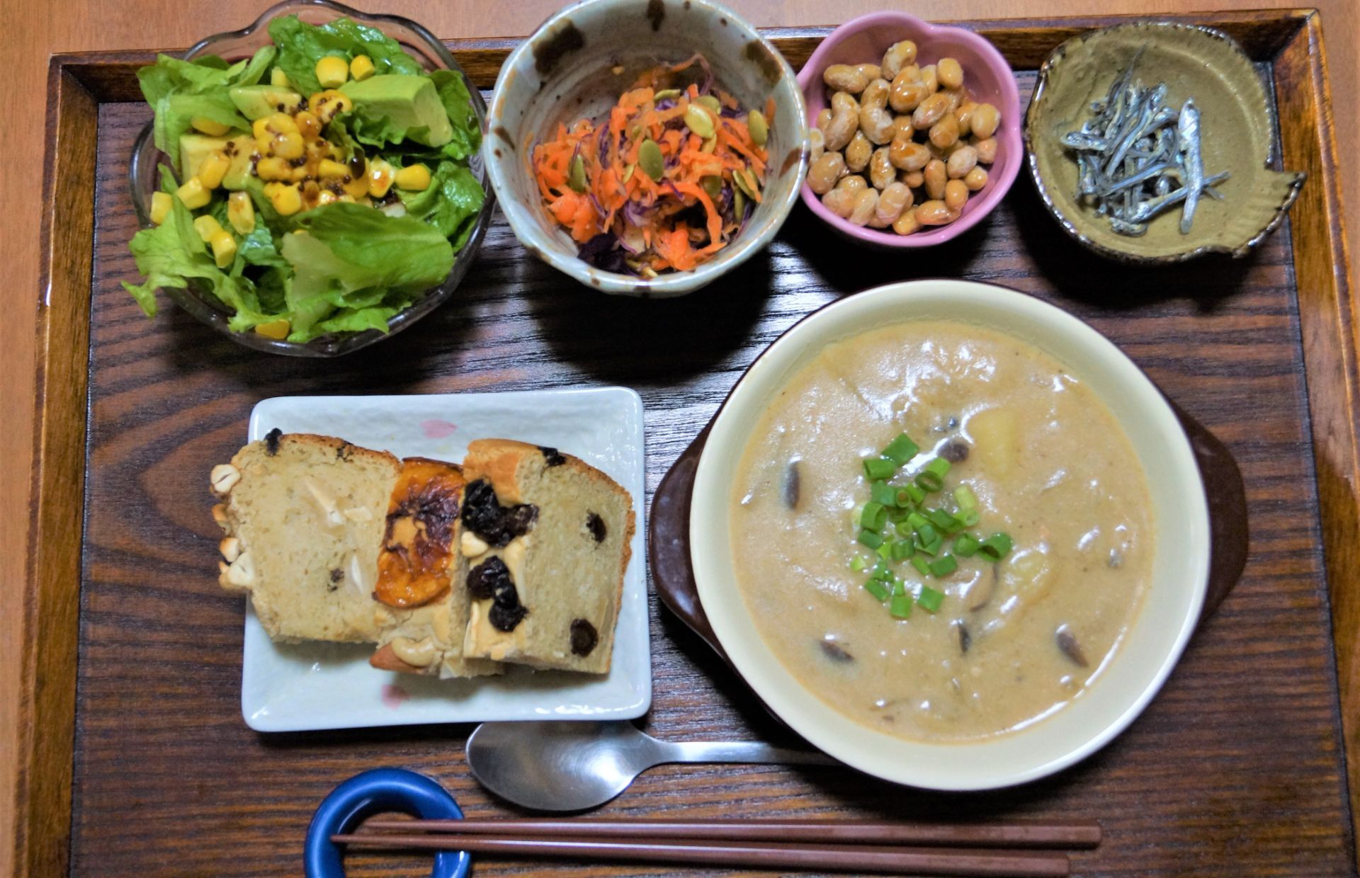 寒い季節に身体を温めるシチュー♪手作り玄米パンを添えて!