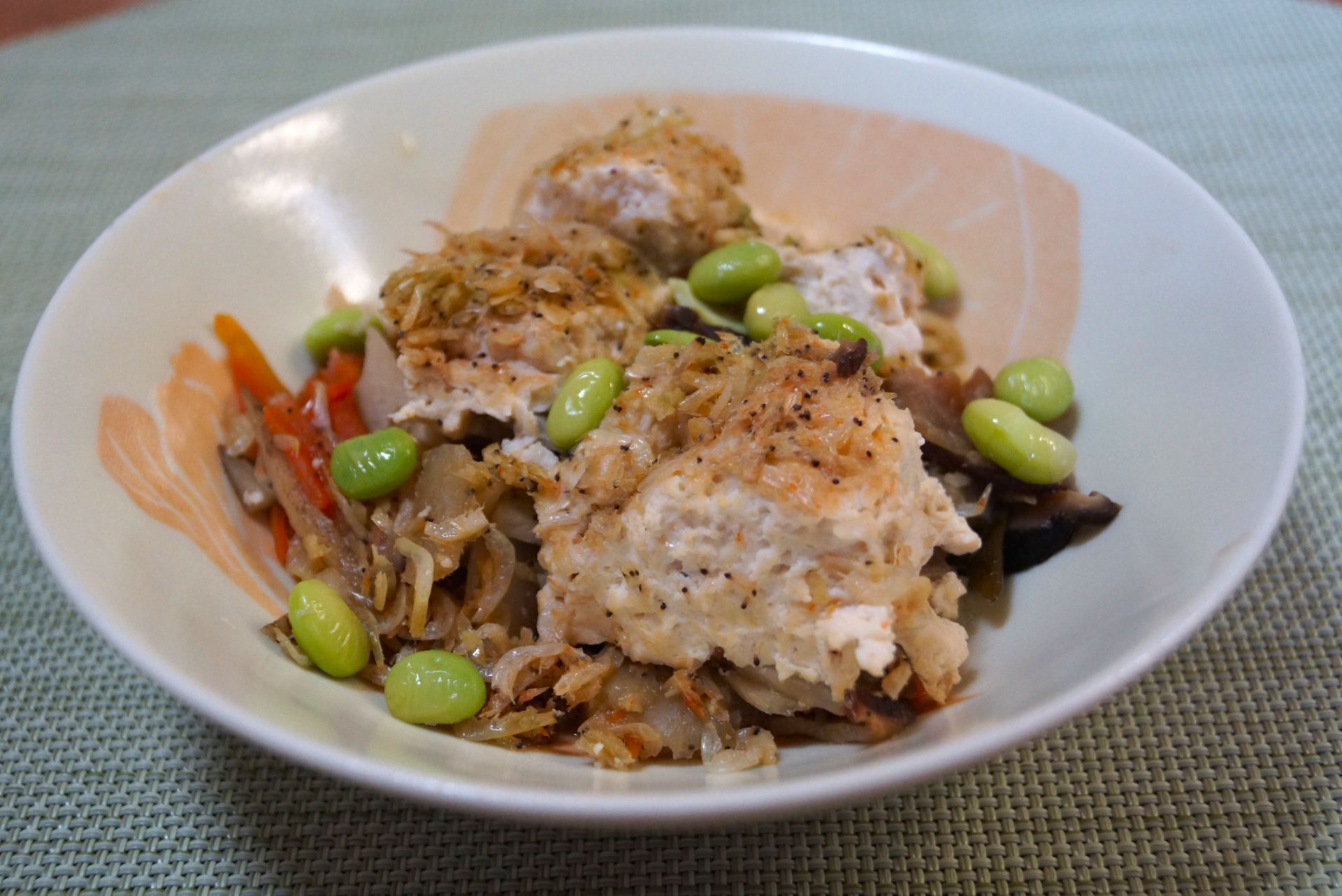 ごぼうはお好みに切る。人参は千切りにする。干ししいたけは水で戻して薄切りにする。玉ねぎは薄切りにする。長ネギは斜めスライスする。豆腐はちぎって水切りしておく。冷凍枝豆はさっと茹でておく。