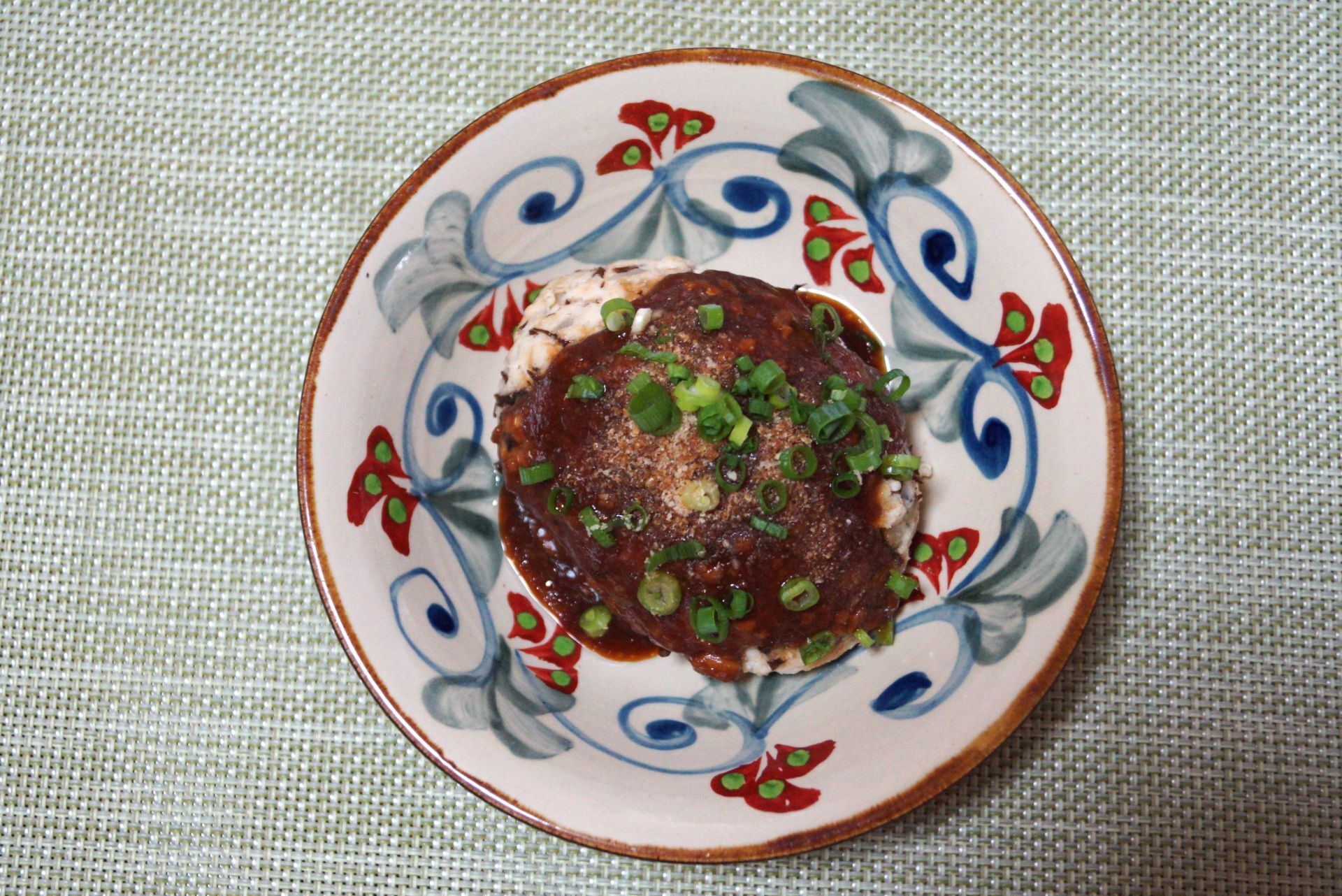 器にハンバーグを盛り付け、❸をかけたらできあがり。
