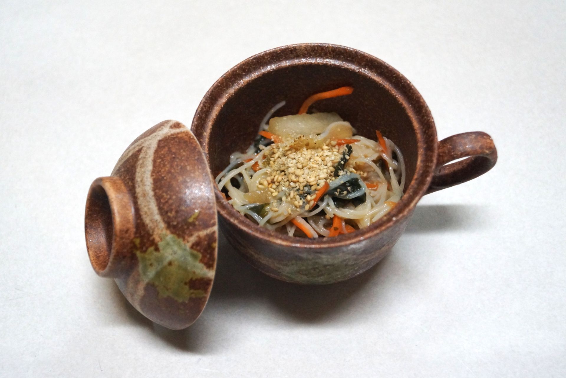 ❷に水気を切った春雨・冬瓜・人参・ワカメを加え和え、味を調えたら出来上がり。