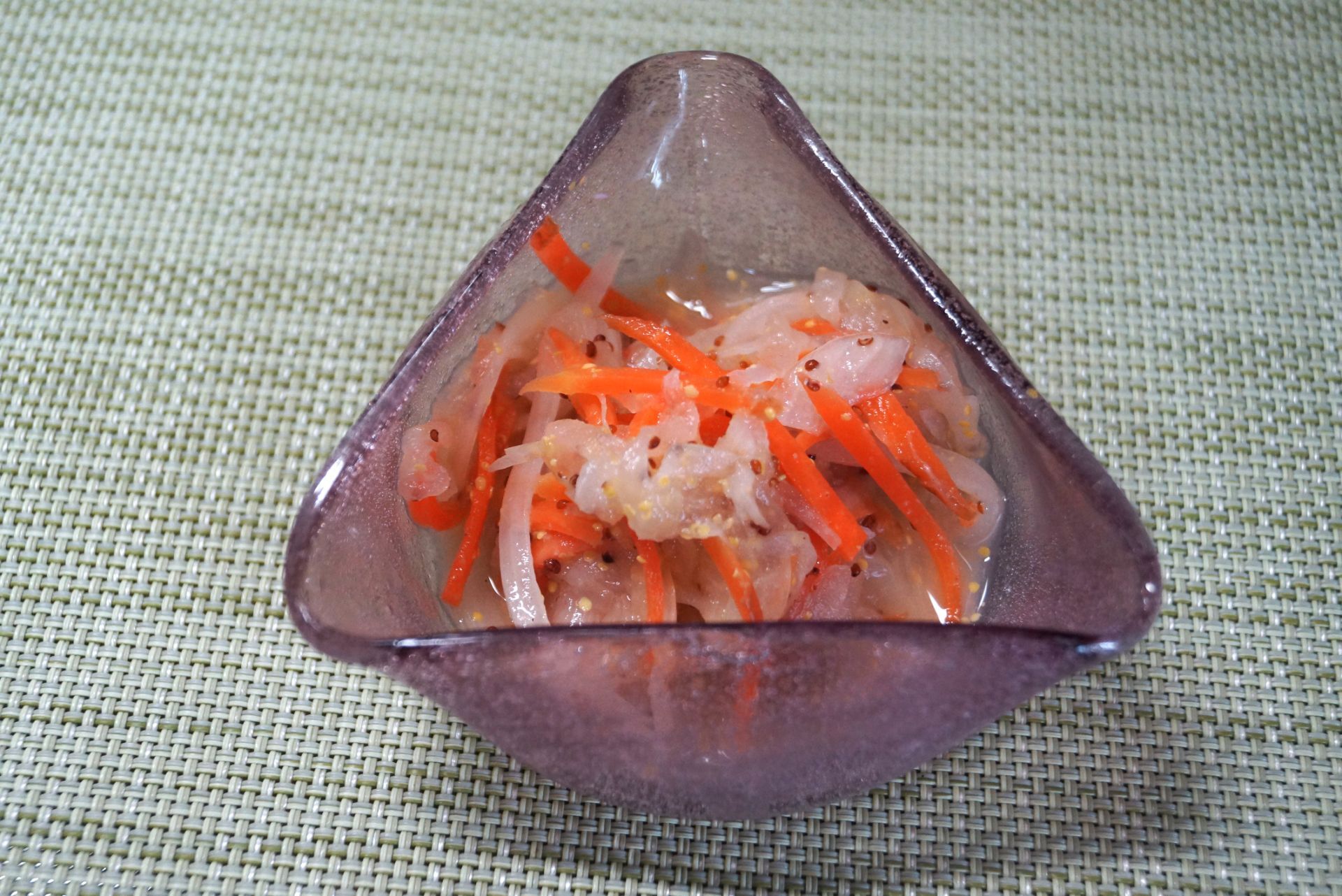 モーイと人参は千切りにして塩もみする。玉ねぎは薄切りにして水にさらす。