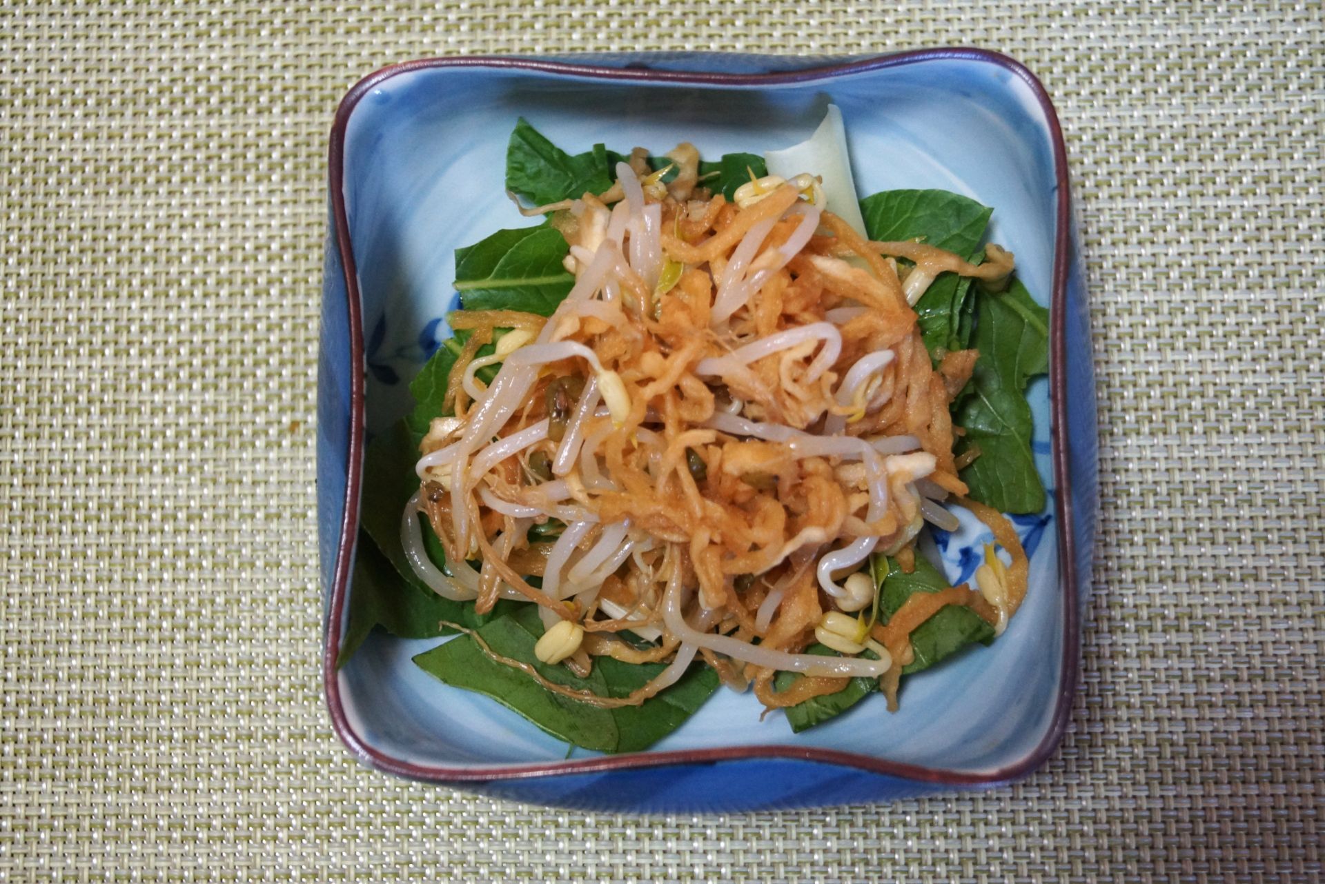 Homeレシピ紹介副菜切干大根ともやしの青のり和え Categories: 副菜 切干大根ともやしの青のり和え 当クリニックからレシピ紹介 Posted on 2025.11.26 by ゆいクリニック (沖縄市の産婦人科) Tags: カゼインフリー グルテンフリー ビーガン ベジタリアン もやし ゆいレシピ 切干大根 砂糖なし 砂糖不使用 青のり 切干大根ともやしの青のり和え 材料 (5人分) もやし 200g 切干大根 50g 青菜 100g 生姜 調味料 水 125㏄ 醤油 20g ごま油 20g 青のり 適量 塩 適量 1調理手順 もやしはさっと茹でる。切干大根はさっと洗いハサミでカットしたら分量の水でもどす。青菜は3センチの長さに切る。生姜はすりおろす。 2調理手順 すりおろし生姜と全ての調味料を混ぜ合わせ、水気を切ったもやしと切干大根を加えて和える。 3調理手順 器に青菜(生のまま)を敷き、❷をのせたら出来上がり。