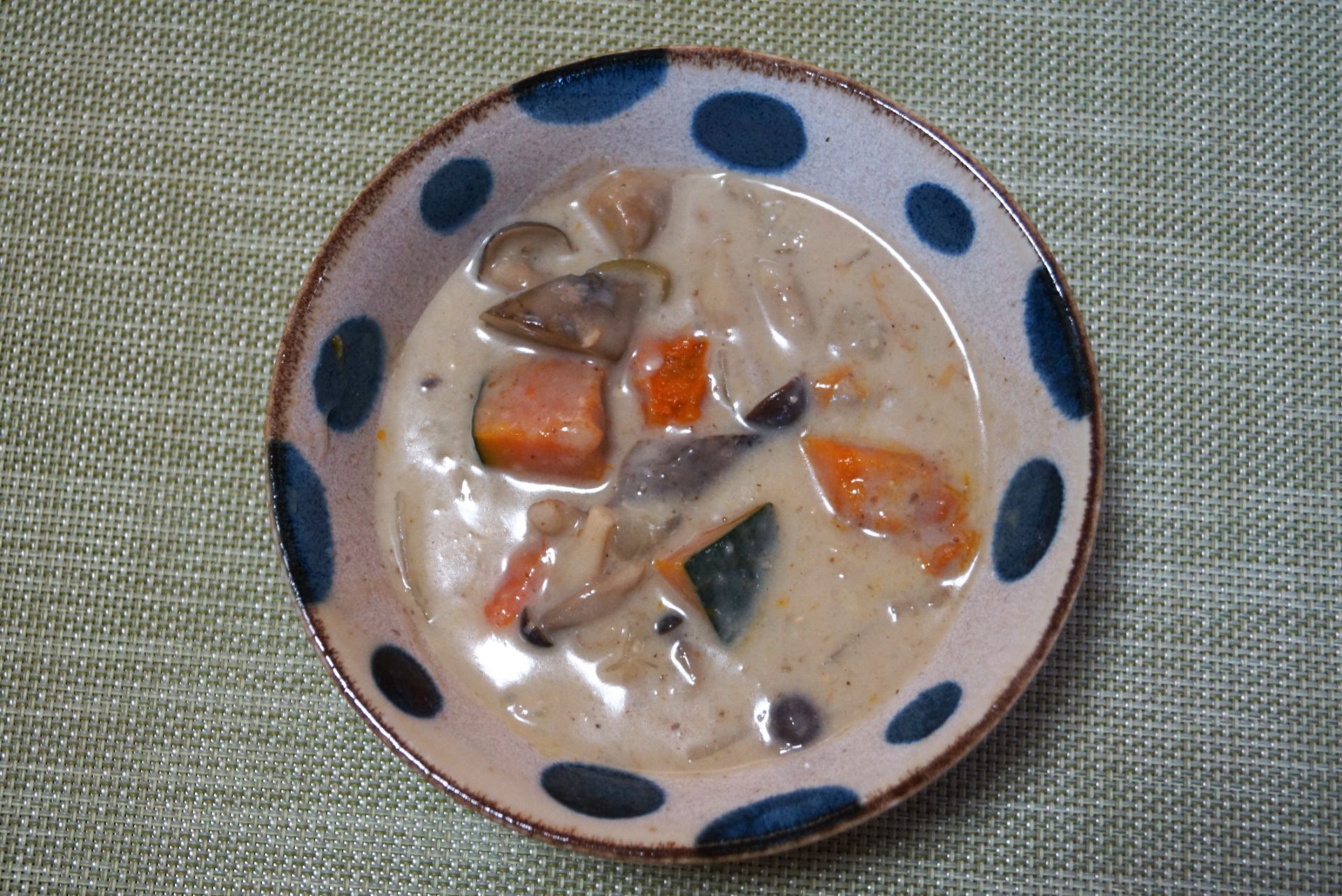 ❹に水(分量の半分)を入れのばし、豆乳、塩を入れ味を調えたら出来上がり。