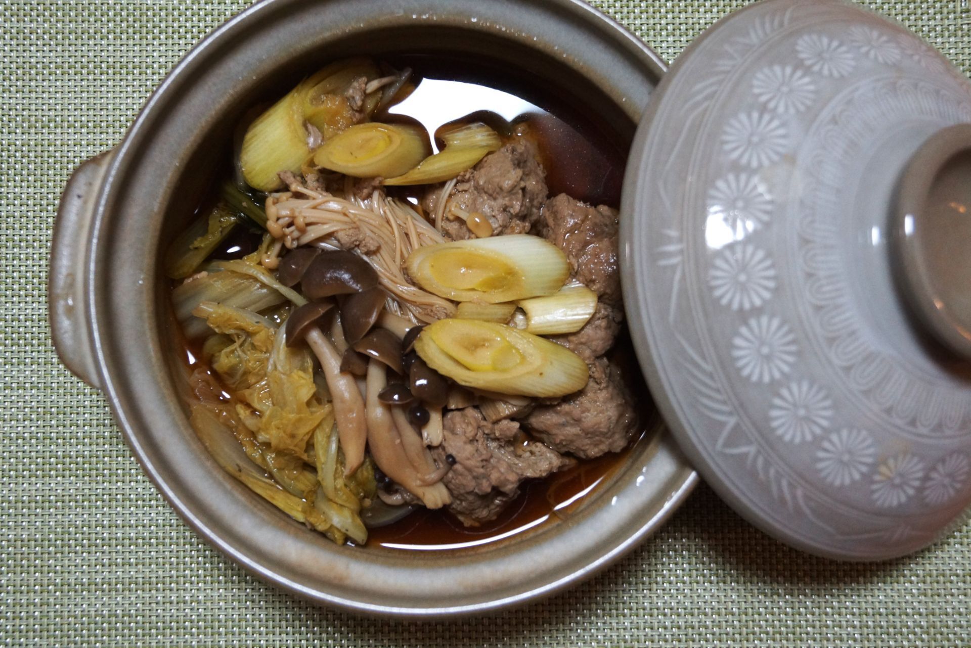 長ネギは斜め切りにして、しめじとえのきはほぐす。白菜はざく切りにして青菜は4センチの長さに切る。