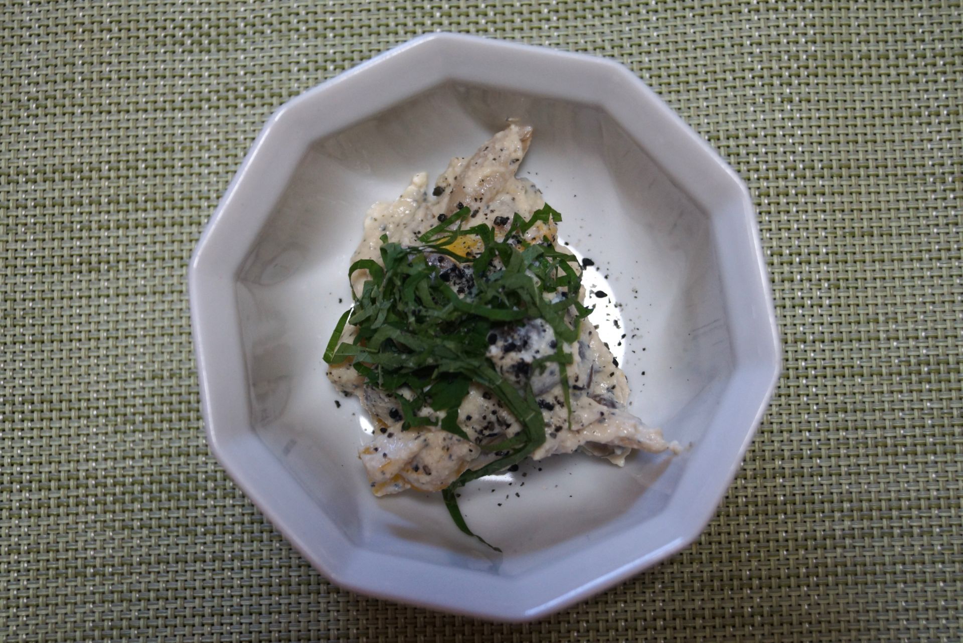 ❸を器に盛り付けて大葉を散らしたら出来上がり。
