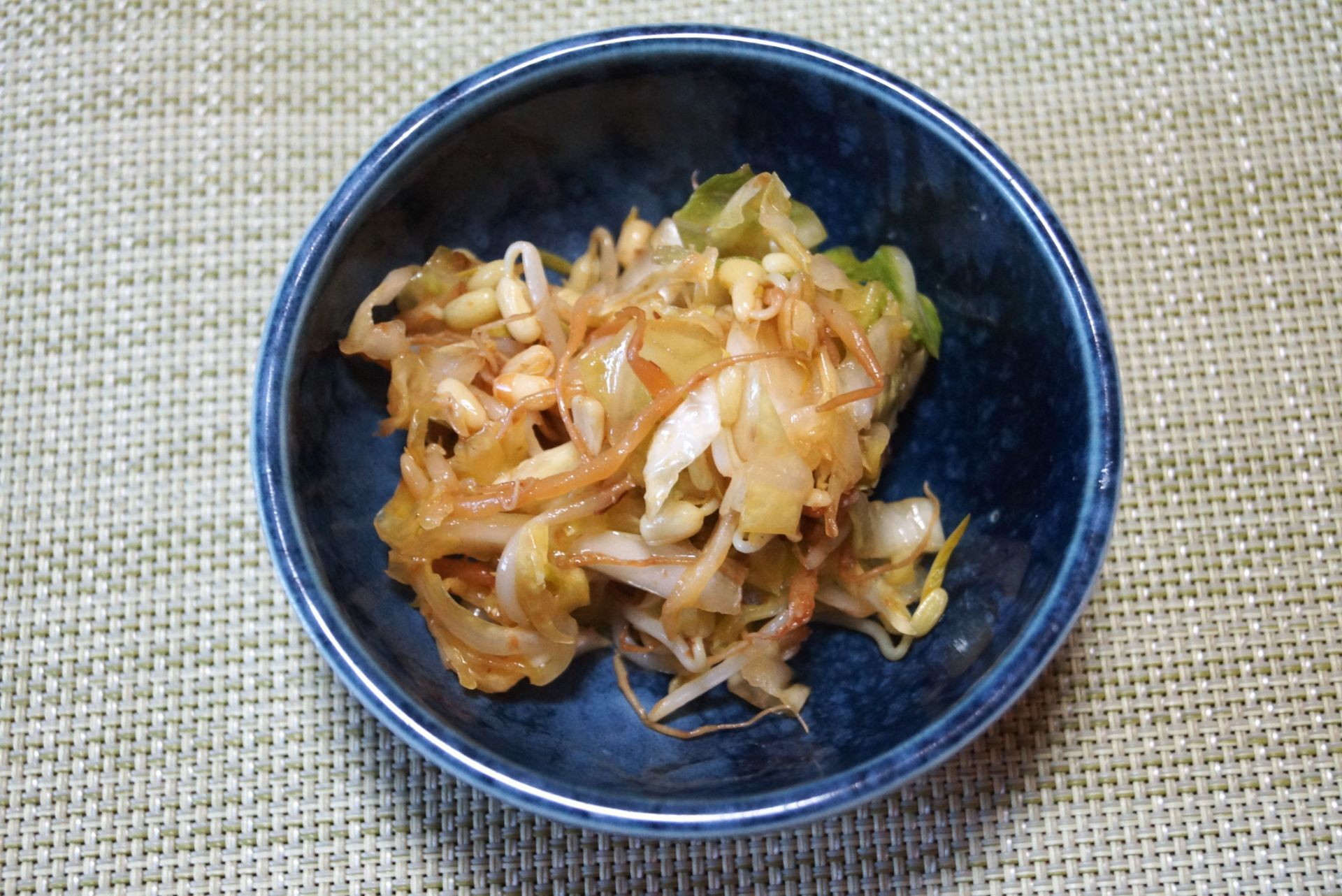 キャベツは太めの千切りにして塩もみする。もやしはさっと茹でる。