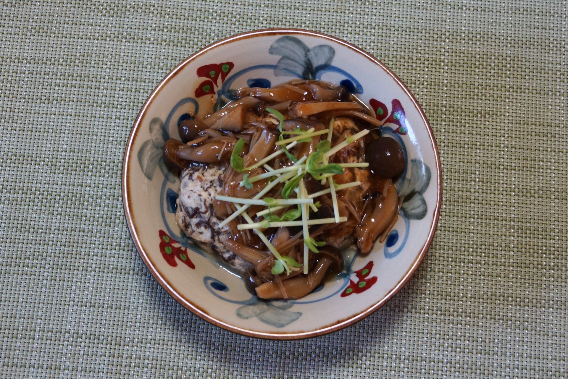 鍋にきのこ類・めんつゆ・だし汁を入れて火にかける。煮立ったら味を調え、水溶き片栗粉でとろみをつける。
