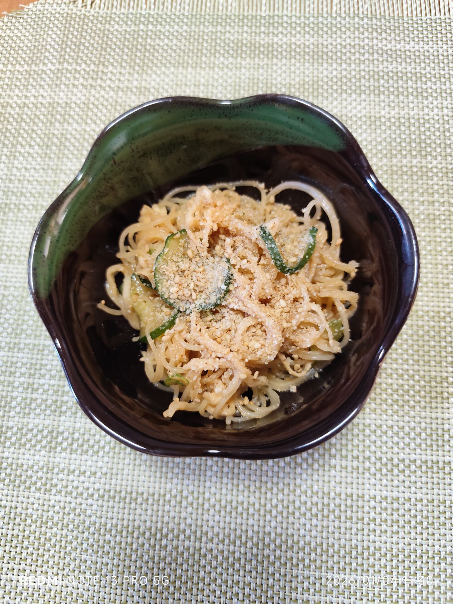 ❷に水気を切った春雨・切干大根・きゅうり・カイワレを加えて混ぜ合わせたら出来上がり。