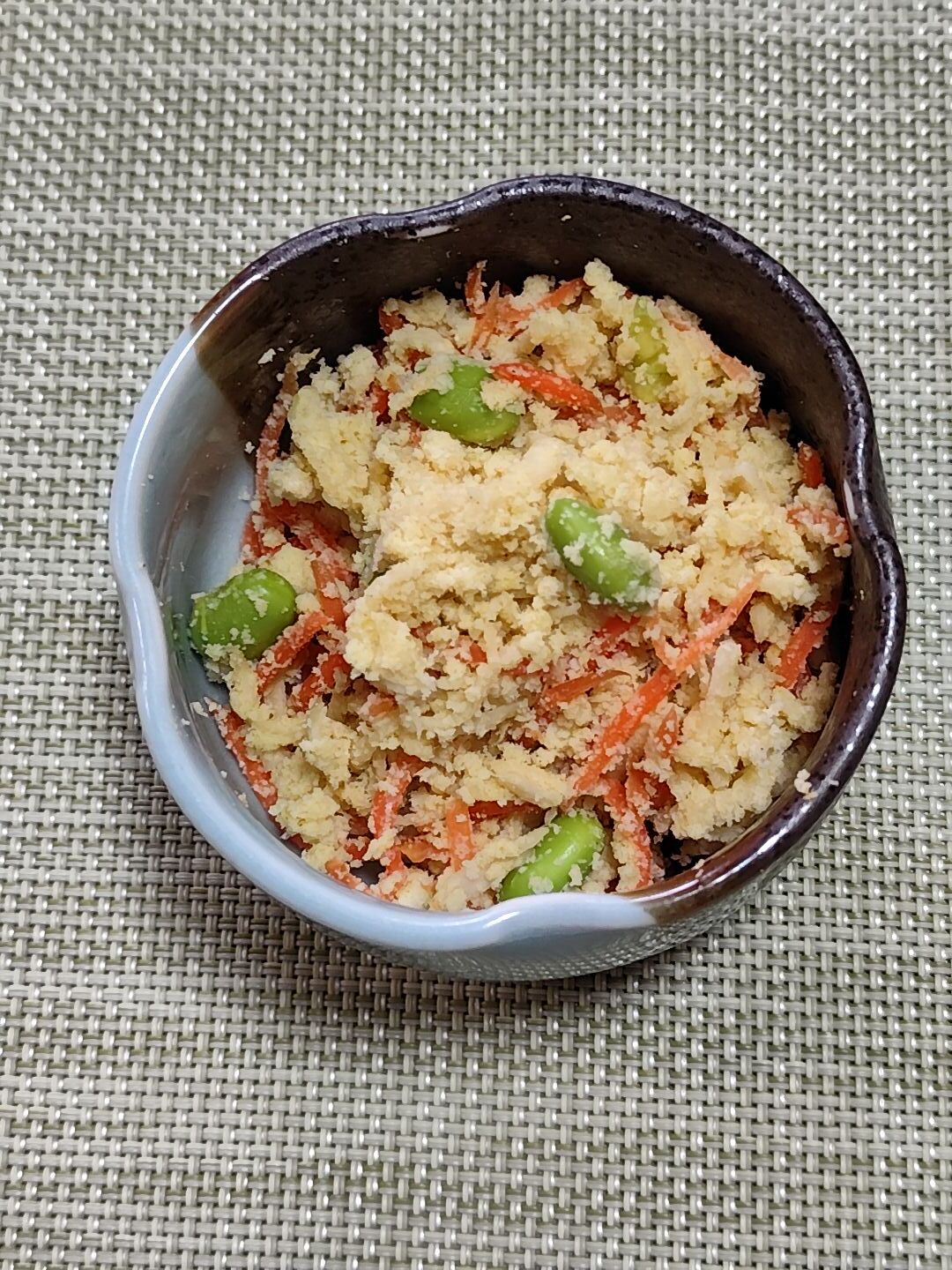 ❷に水気を絞った切干大根・人参・おから・枝豆を加えて和えたら出来上がり。