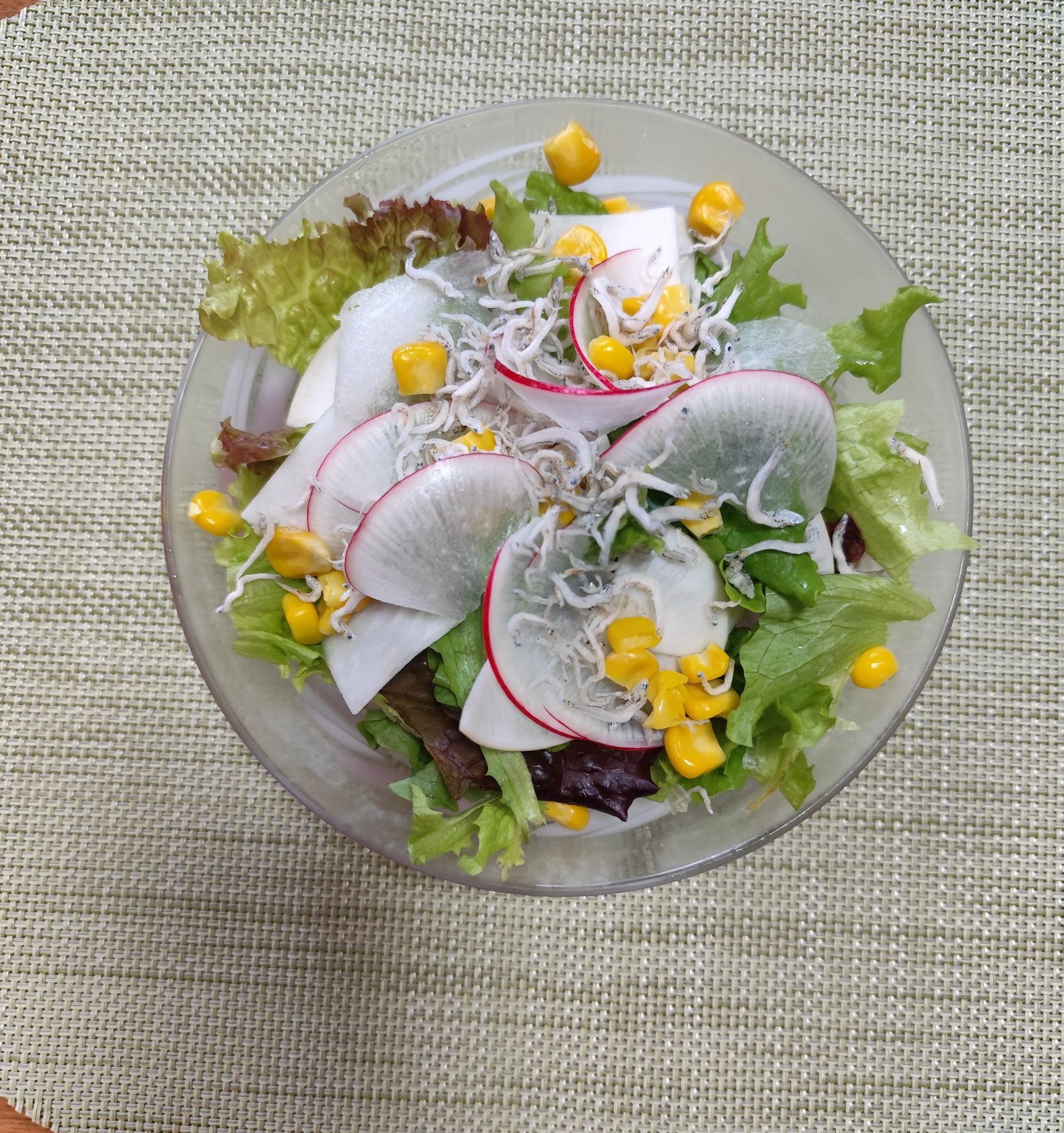 野菜を器に盛り付けて❷のドレッシングをかけたら出来上がり。