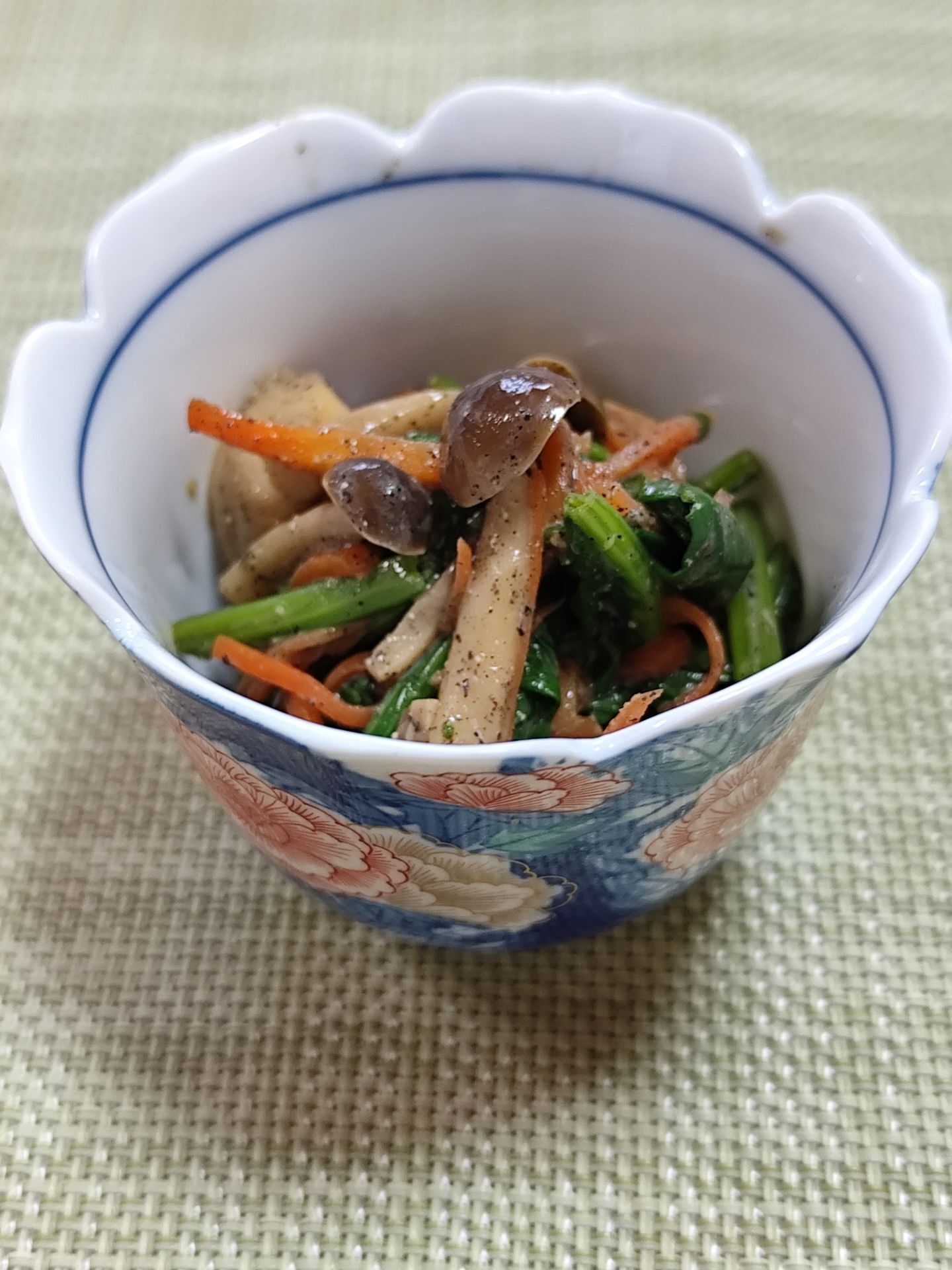❷に水気を切ったほうれん草・しめじ・人参を加えて和えたら出来上がり。