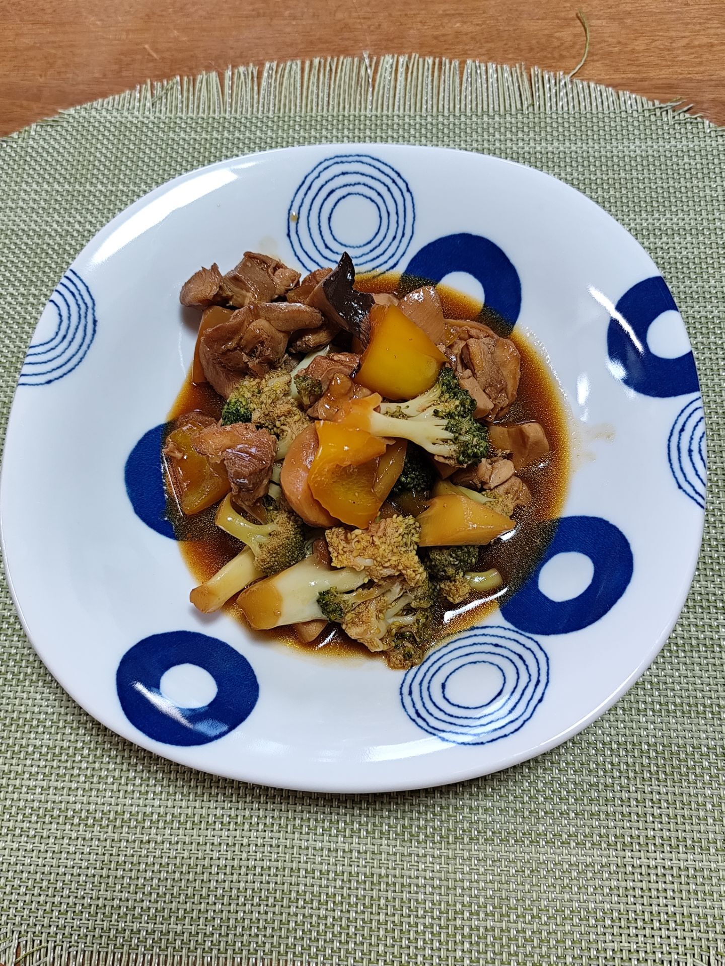 ブロッコリーは小房に分け少し硬めに茹でておく。鶏もも肉は一口大にカットして塩コショウと片栗粉をまぶしておく。エリンギ・黄パプリカは一口大に切る。