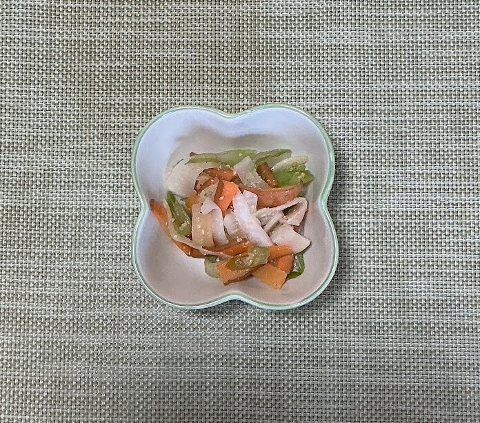 Homeレシピ紹介副菜セロリと人参の玉ねぎ麹ナムル Categories: 副菜 セロリと人参の玉ねぎ麹ナムル 当クリニックからレシピ紹介 Posted on 2026.3.25 by ゆいクリニック (沖縄市の産婦人科) Tags: カゼインフリー グルテンフリー セロリ ナムル ビーガン ベジタリアン ゆいレシピ ローフード 添加物不使用 玉ねぎ麹 砂糖なし 砂糖不使用 セロリと人参の玉ねぎ麹ナムル 材料 (5人分) セロリ 150g 人参 150g かぶ 100g 調味料 玉ねぎ麹 15g ごま油 5g すりごま 10g 1調理手順 セロリは斜め薄切りにして塩もみする。人参とかぶは短冊切りにして塩もみする。 2調理手順 ボウルに玉ねぎ麹・ごま油・すりごまを混ぜ合わせる。 3調理手順 ❷に水気を切った野菜を加えて和えたら出来上がり。