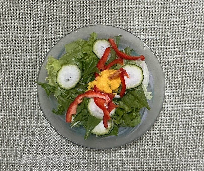 Homeレシピ紹介ドレッシング野菜サラダ《人参ドレ》★ Categories: ドレッシング 野菜サラダ《人参ドレ》★ 当クリニックからレシピ紹介 Posted on 2026.4.11 by ゆいクリニック (沖縄市の産婦人科) Tags: カゼインフリー グルテンフリー ビーガン ベジタリアン ゆいレシピ ローフード 手作りドレッシング 添加物不使用 砂糖なし 砂糖不使用 野菜サラダ《人参ドレ》★ 材料 (5人分) レタス類 125g 水菜 3cm ズッキーニ 50g 赤ピーマン 50g 調味料 A 人参 50g A 油 25g A 塩コショウ 適量 A 酢 10g A レモン汁 10g 1調理手順 野菜はお好みにカットします。 2調理手順 Aの材料をミキサーにかける。 3調理手順 器に野菜を盛りつけ、混ぜ合わせたAをかける。ドレッシングは味の調整をお願いします。
