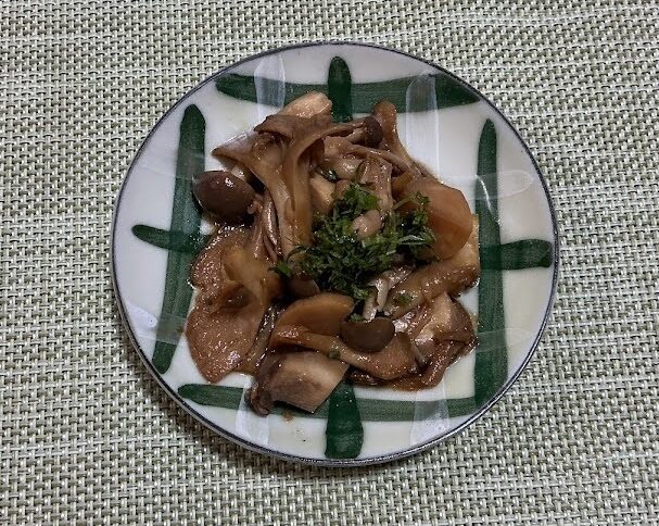 エリンギは乱切り、しめじ、まいたけはほぐす。大葉はみじん切りにします。