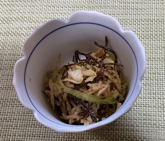 Homeレシピ紹介副菜キャベツと切干大根とひじきの炒りぬか和え⭐︎ Categories: 副菜 キャベツと切干大根とひじきの炒りぬか和え⭐︎ 当クリニックからレシピ紹介 Posted on 2026.4.21 by ゆいクリニック (沖縄市の産婦人科) Tags: カゼインフリー グルテンフリー ビーガン ベジタリアン ゆいレシピ ローフード 添加物不使用 砂糖なし 砂糖不使用 キャベツと切干大根とひじきの炒りぬか和え⭐︎ 材料 (5人分) 切干大根(乾) 50g 水 125㏄ ひじき(乾) 10g キャベツ 200g 調味料 A 米ぬか 15g A 醤油 15g A 塩 適量 1調理手順 切干大根はさっと洗い食べやすくカットしたら分量の水で戻す。ひじきは水で戻してさっと茹でる。キャベツは千切りにし、塩もみする。 2調理手順 ②ボウルに❶とAを加え和え、塩で味を調えたら出来上がり。