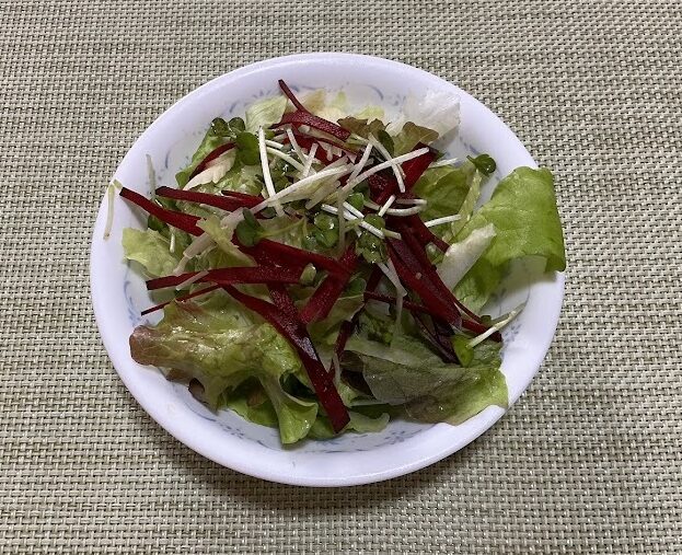 Homeレシピ紹介ドレッシング野菜サラダ《紫キャベツドレ》 Categories: ドレッシング 野菜サラダ《紫キャベツドレ》 当クリニックからレシピ紹介 Posted on 2026.4.24 by ゆいクリニック (沖縄市の産婦人科) Tags: カゼインフリー きのこ グルテンフリー ビーガン ベジタリアン ゆいレシピ ローフード 手作りドレッシング 添加物不使用 玄米甘酒 砂糖なし 砂糖不使用 野菜サラダ《紫キャベツドレ》 材料 (5人分) レタス類 150g セロリ 75g ラディッシュ 30g カイワレ 15g 調味料 A 紫キャベツ 20g A レモン汁・甘酒 各10g A 油 20g A 塩 適量 A 酢 15g A 水 30g A にんにく 3g 1調理手順 野菜はお好みでカットします。 2調理手順 器に野菜を盛りつけ、混ぜ合わせたAをかける。ドレッシングは味の調整をお願いします。