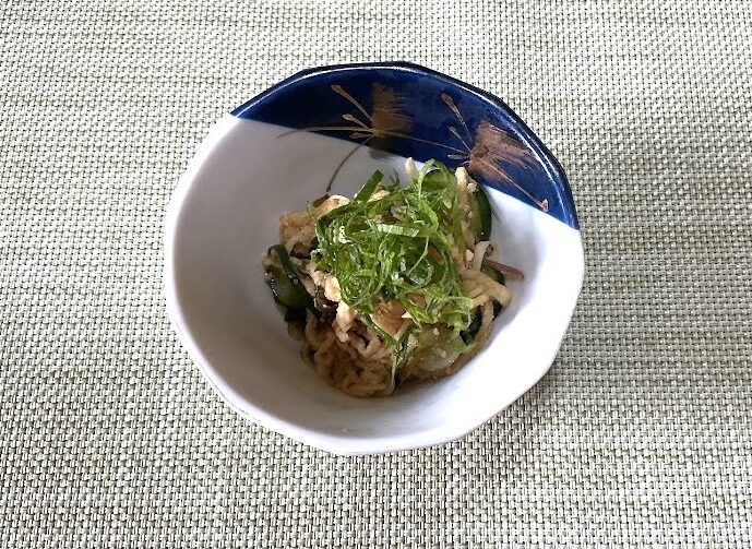 ②と生姜・大葉・ミョウガとAを混ぜ合わせ、味を調えたら完成。