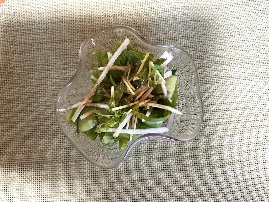 器に野菜を盛りつけ、混ぜ合わせたAをかける。ドレッシングは味の調整をお願いします。